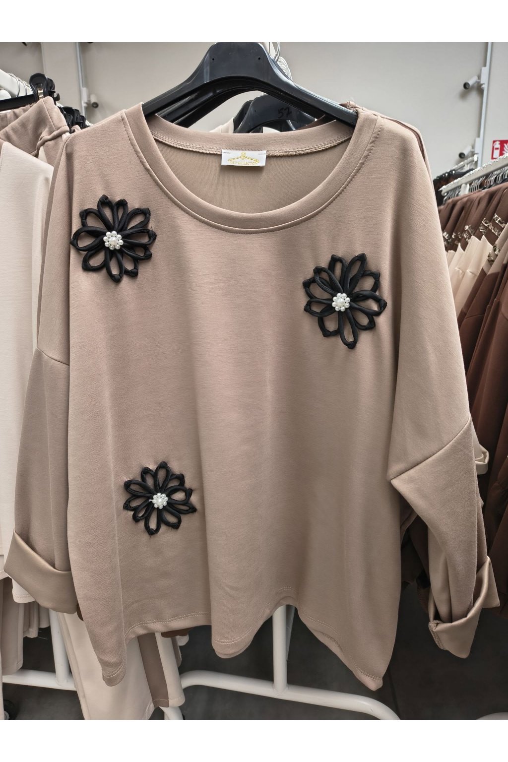 Domů/BUTIK, Moda Italia/Halenky, Tuniky, Košile, Trika/Dámská značková mikina vyšívané kytičky a korálky - barvy na výběr - oversize - prsa do 130 cm, ale spíše se nosí volné /40/42/44/46/(48?, délka 64 cm / Itálie)