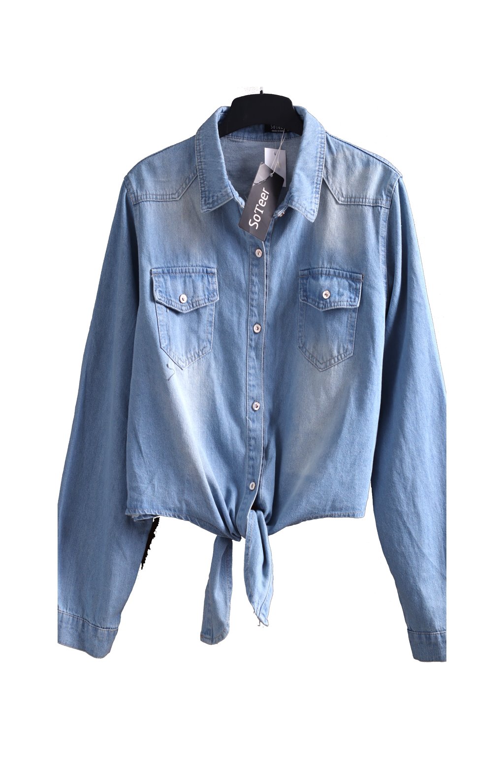 Dámská modrá džínová košile se zavazováním / SOTEER / XXL (46/48) / UK 16/18 / ANGLIE