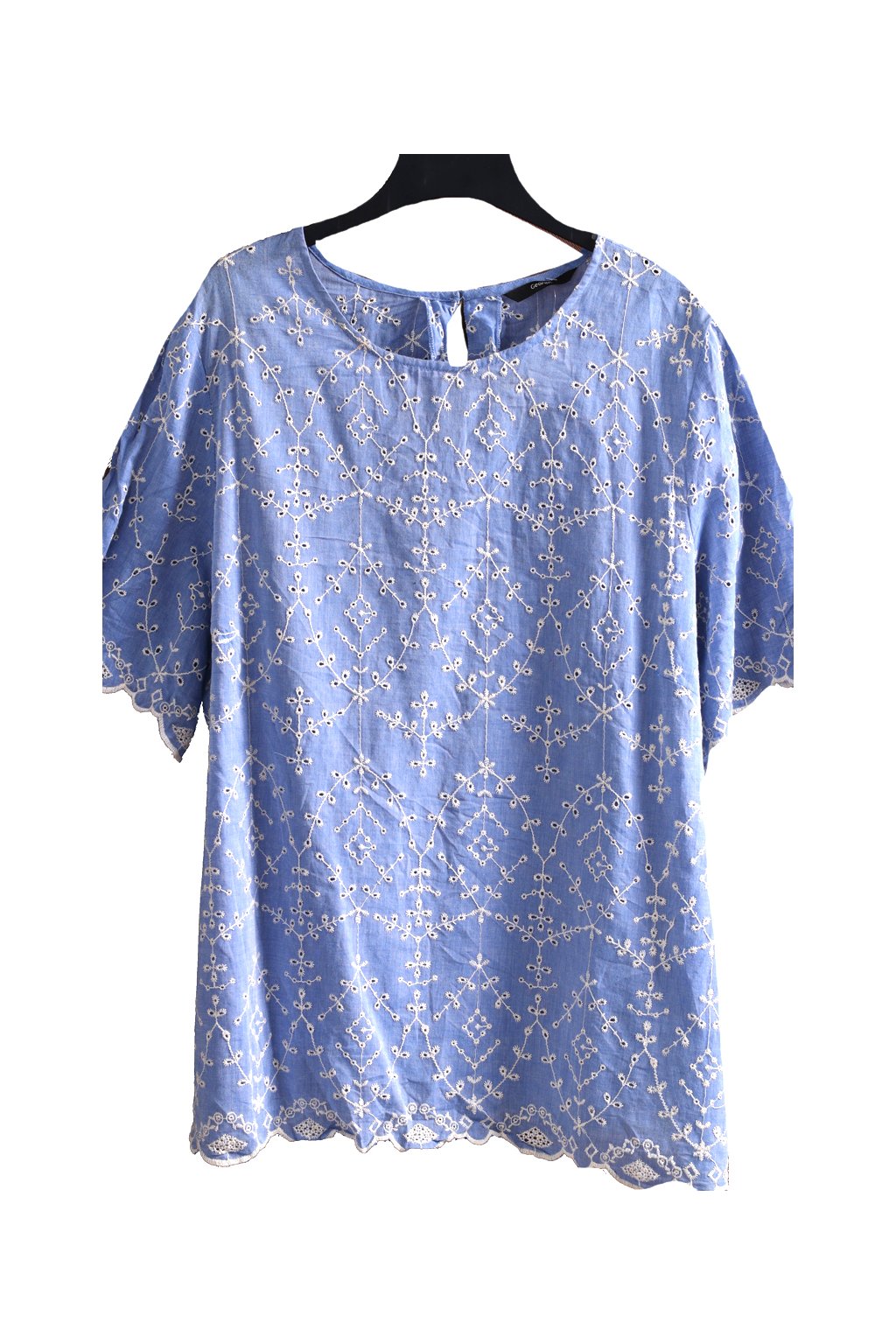 Dámská modrá halenka s bílými květovými výšivkami / GEORGE / XXXL (48) / UK 20 / ANGLIE