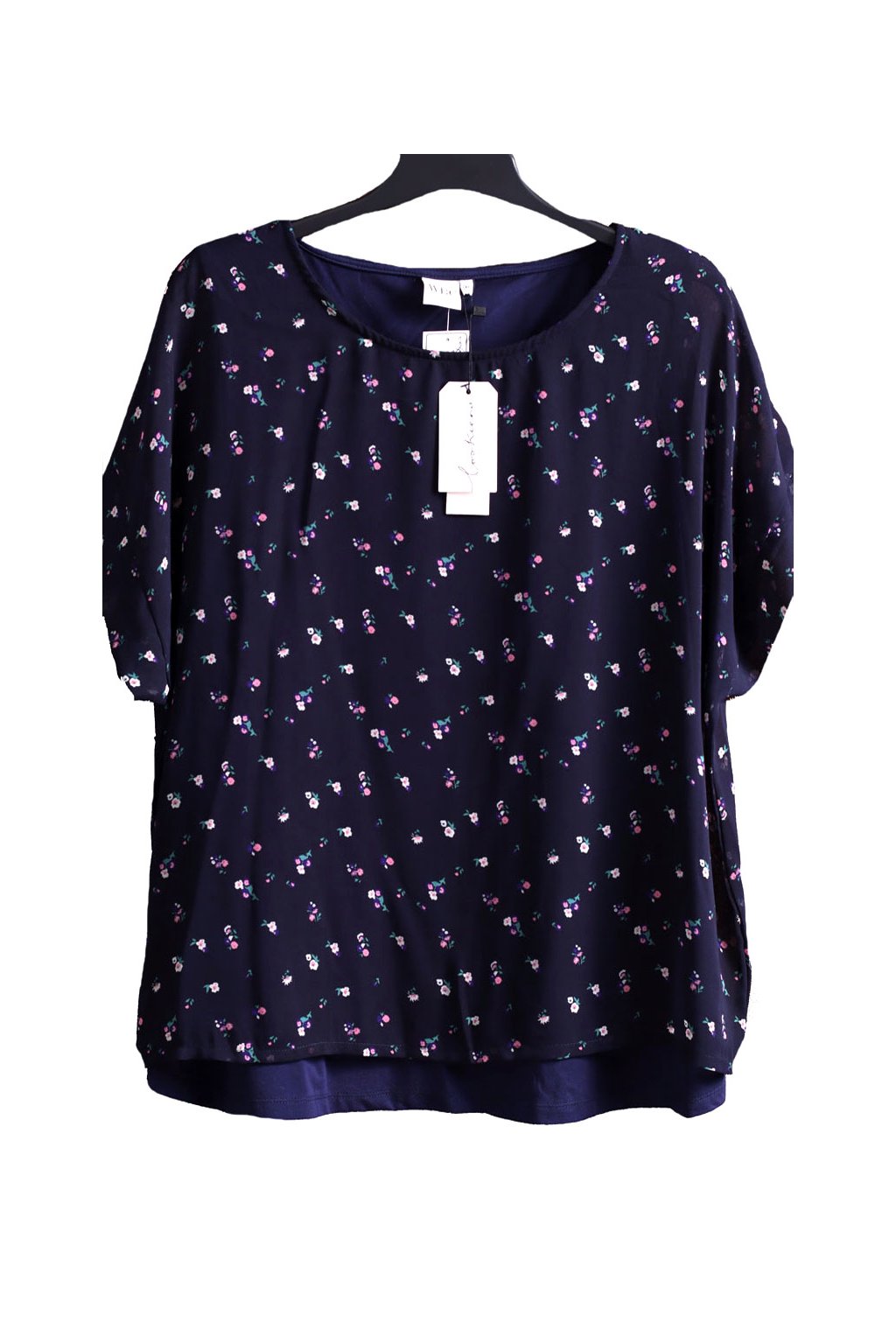 Dámská modrá halenka s květy / WDC/ XXL (46/48) NA ŠTÍTKU UK-20/ ANGLIE