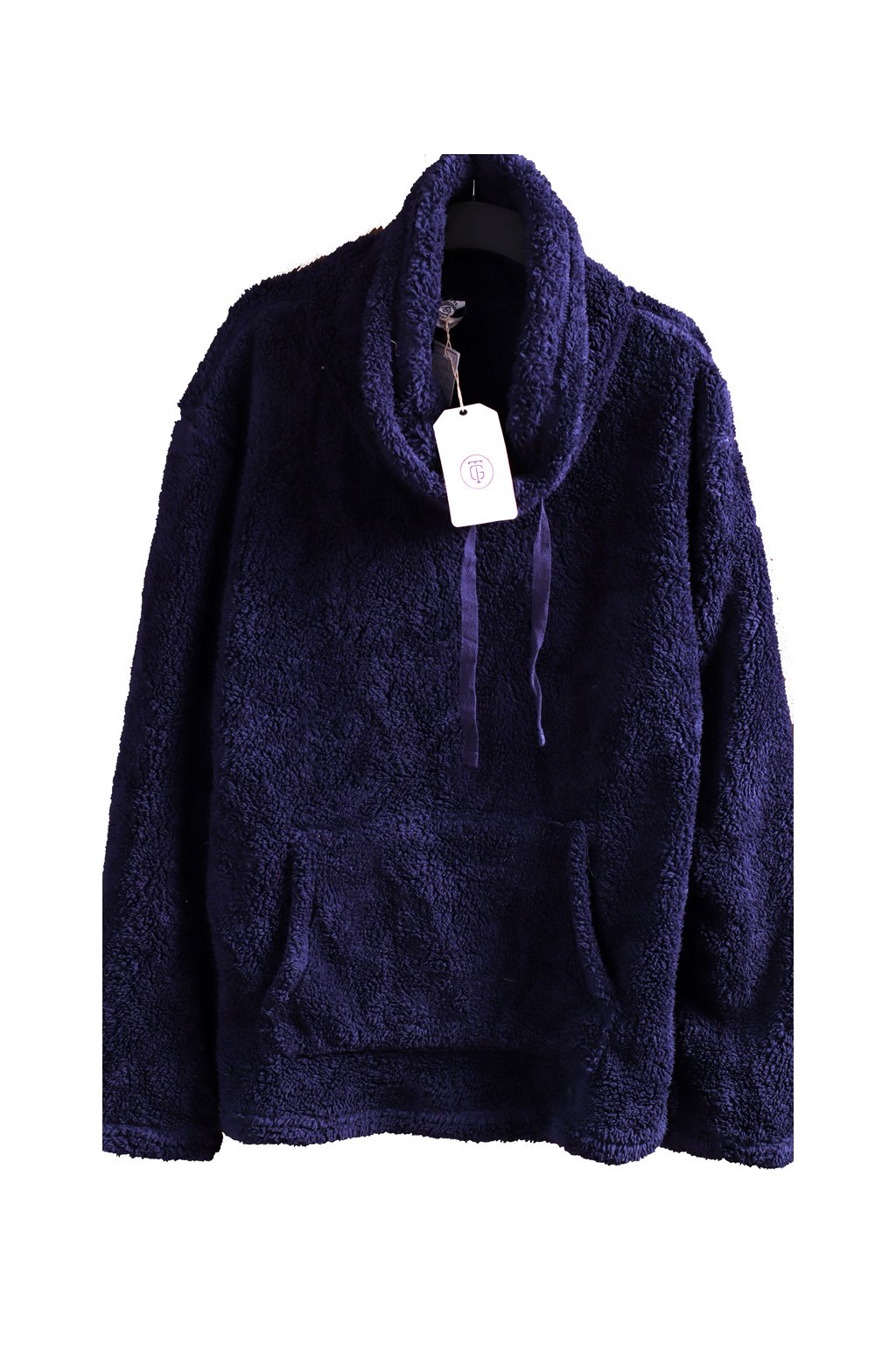 Dámská modrá plyšová mikina s rolákem / FINEST MADE CLOTHING CO / XXXL (50) / UK 22 / ANGLIE