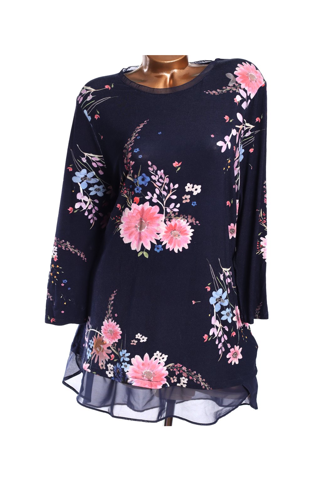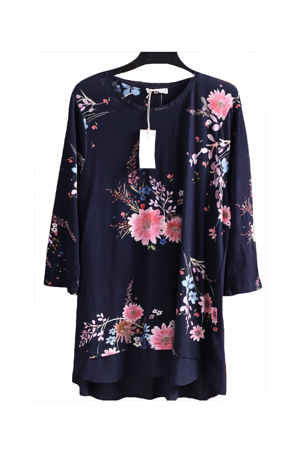 Dámská modrá tunika s barevnými květy / JOHN ROCHA / XXXL (48) / UK 20 / ANGLIE
