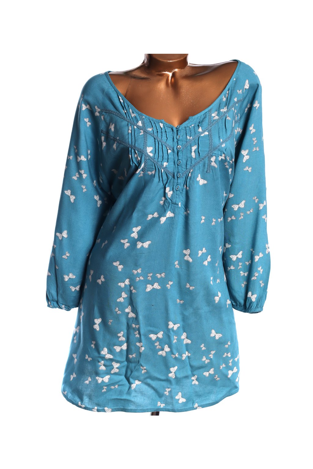 Dámská modrá tunika s bílými motýlky / TU / XXXL (48) / UK 20 / ANGLIE