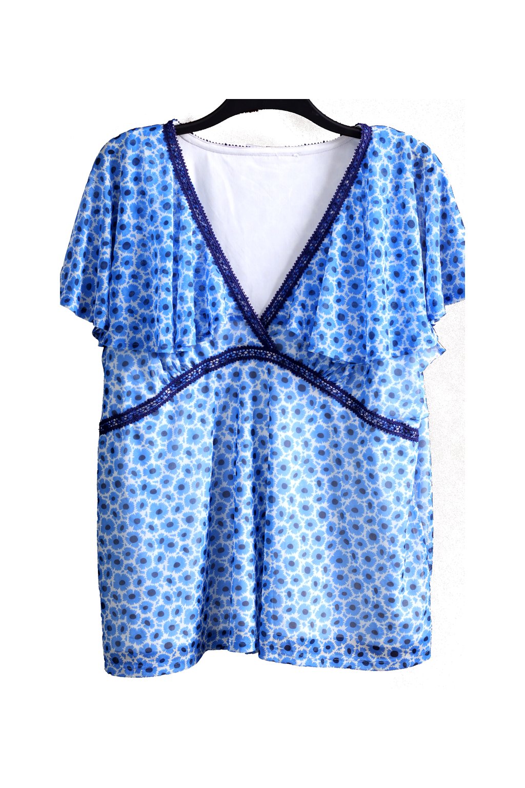 Dámská modro-bílá květovaná halenka / NEXT - XXXXL (52) / ANGLIE