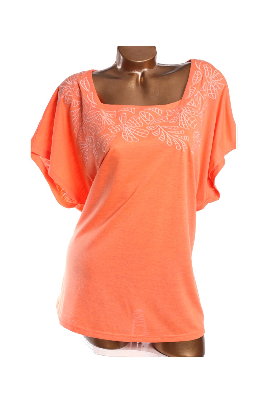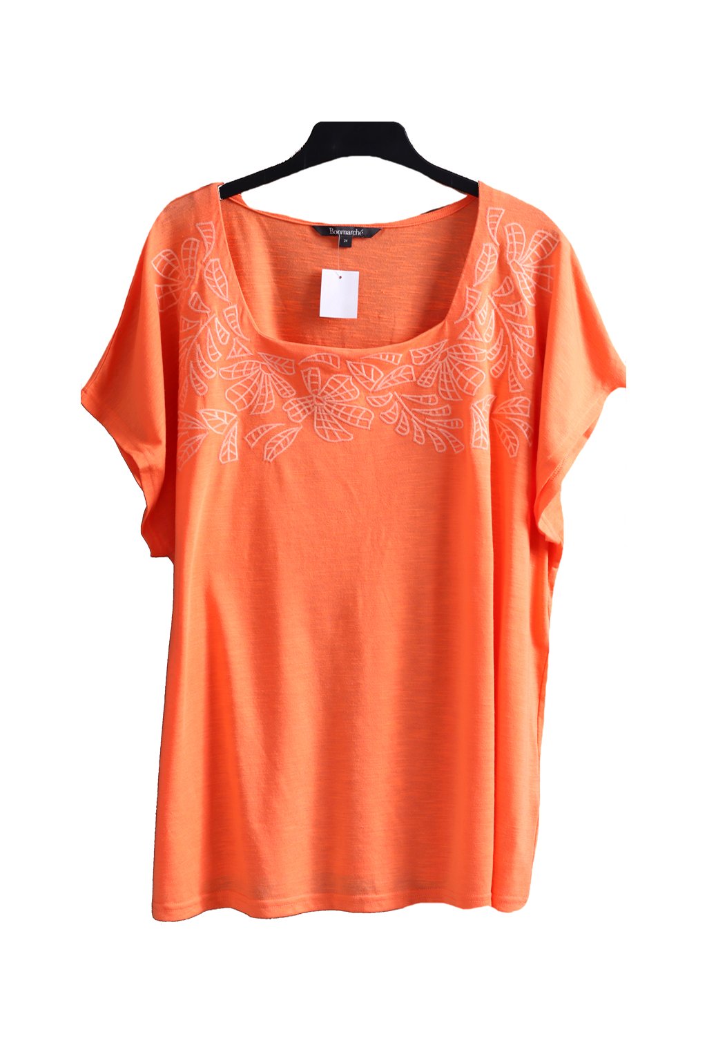 Dámská oranžová halenka s květovou výšivkou / BONMARCHÉ / XXXXL (52) / UK 24 / ANGLIE