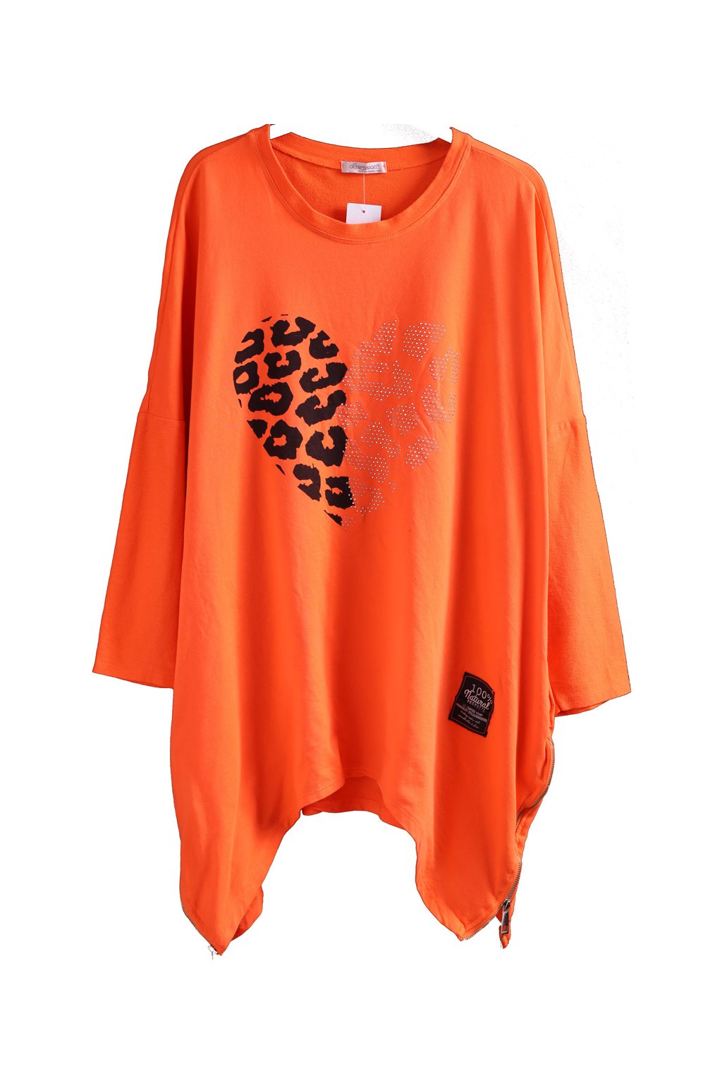 Dámská oranžová tunika se srdíčkem s kamínkami a leopardím vzorem / YOURS / XXXXL (52/54) / UK 24/26 ANGLIE