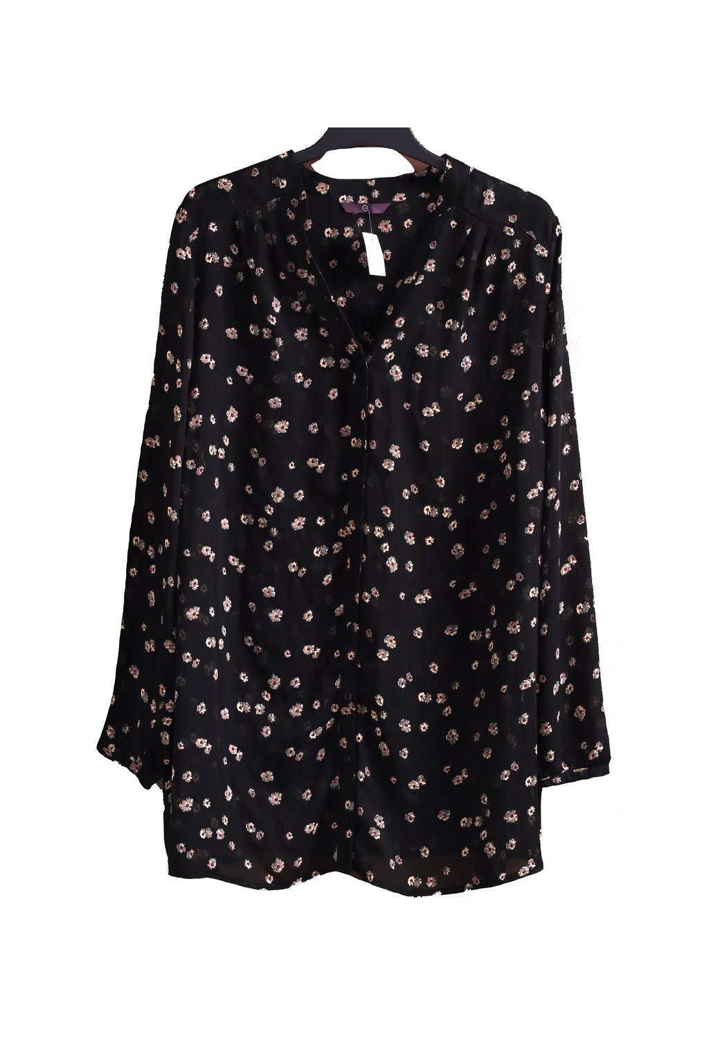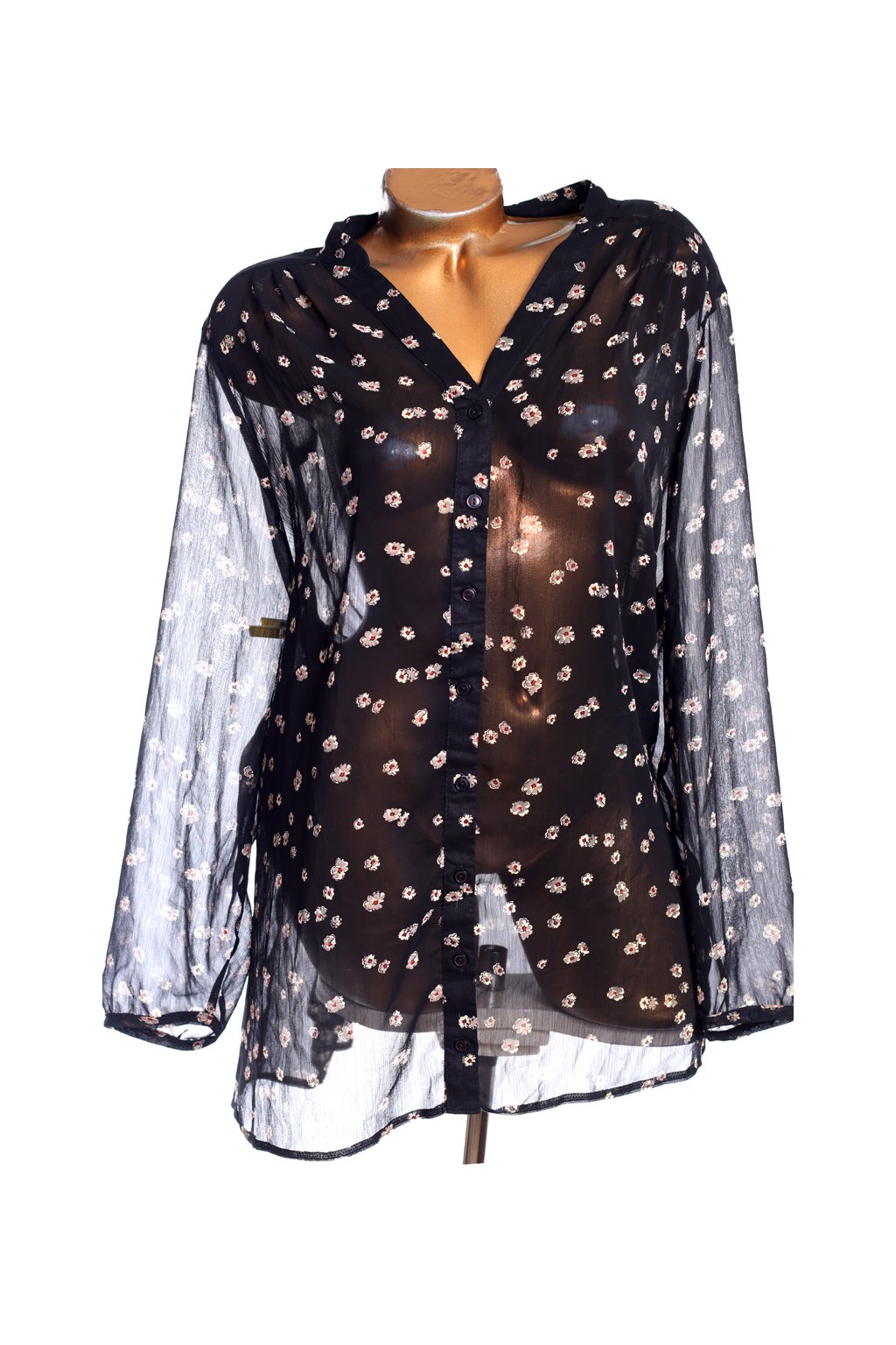 Dámská průsvitná černá košile s béžovými květy / E / XXXL (50/52) / UK 22 / ANGLIE