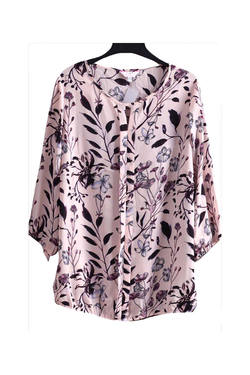 Dámská růžová halenka s černo-fialovými květy / JULIPA / XXXL (48) / UK 20 / ANGLIE