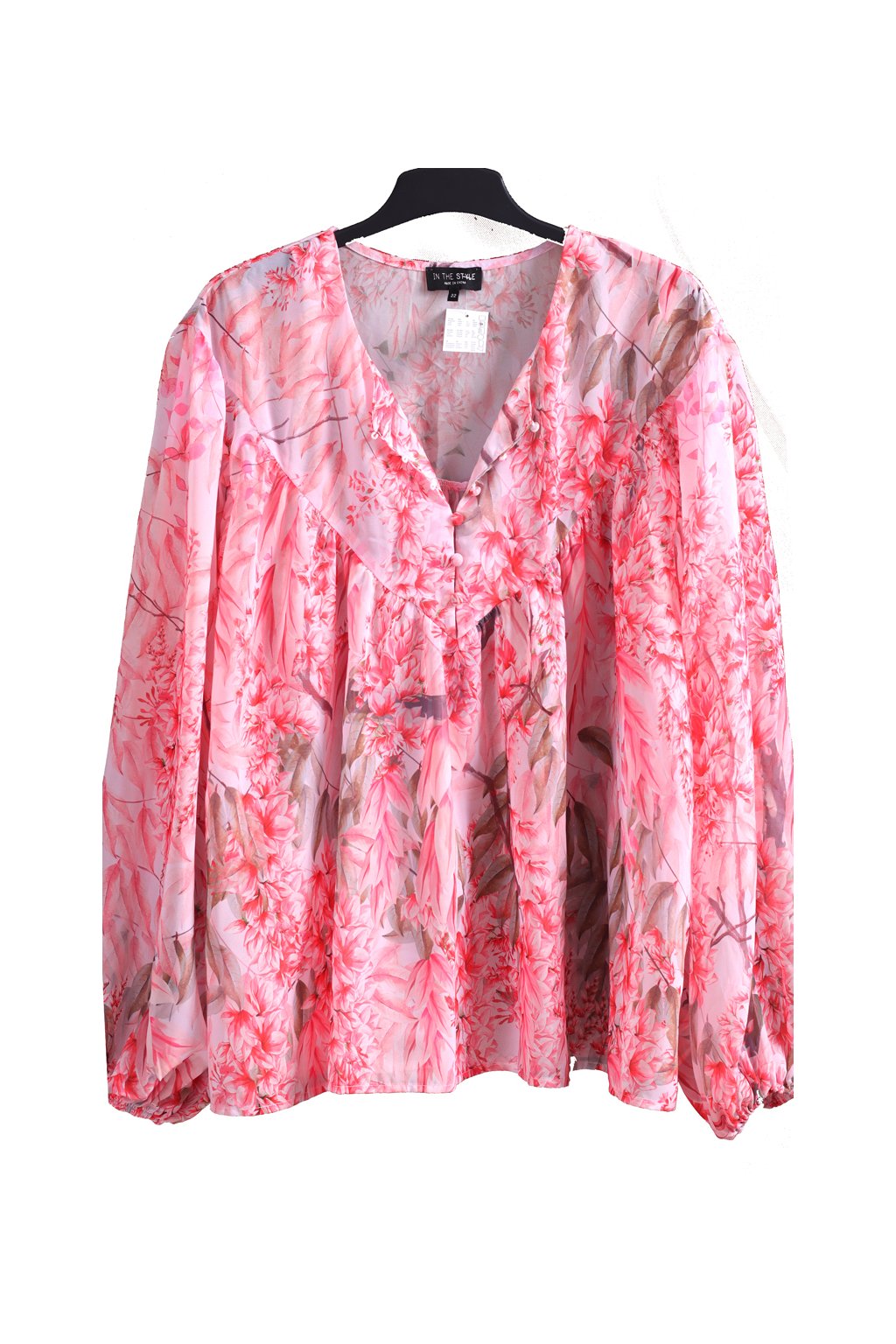 Dámská růžová průhledná halenka s barevnými květy / IN THE STYLE / (50) / UK 22 / ANGLIE