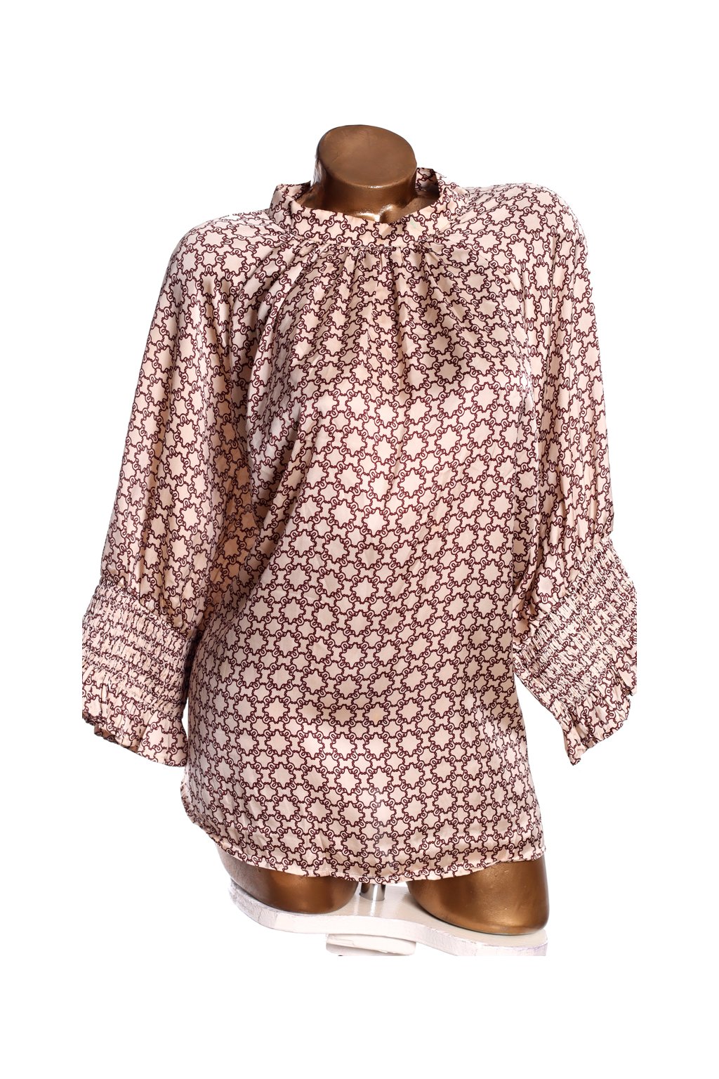 Dámská saténová béžová halenka s hnědými vzory / XXXL (50) / UK 22 / ANGLIE