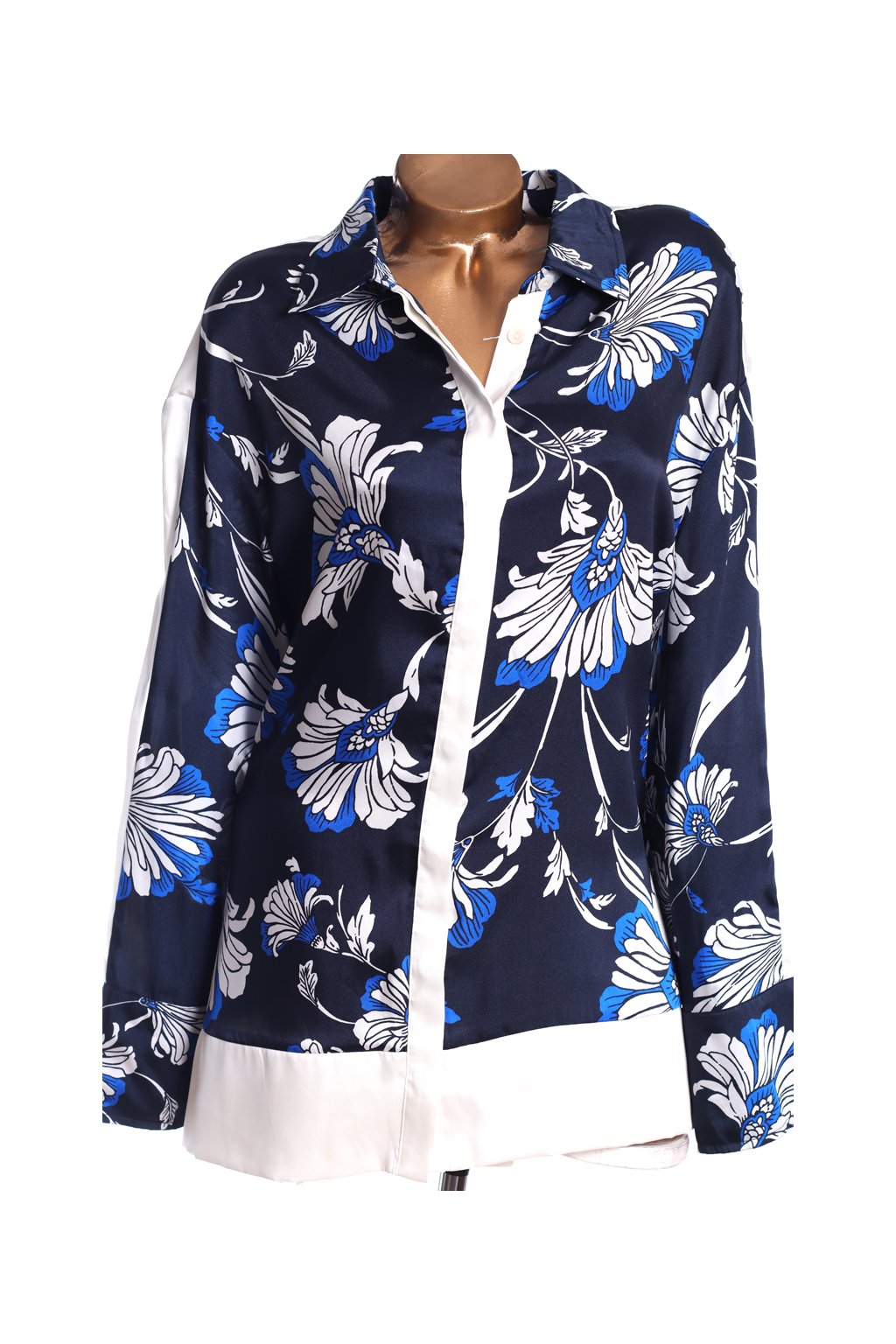 Dámská saténová černo-bílá košile s modro-bílými květy / Marks & Spencer/ XXXL (48) / UK 20 / ANGLIE
