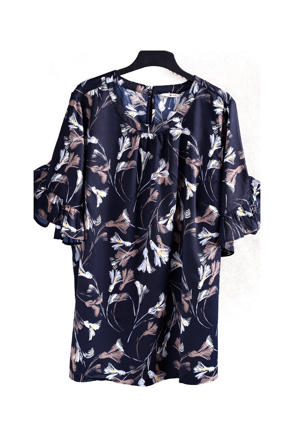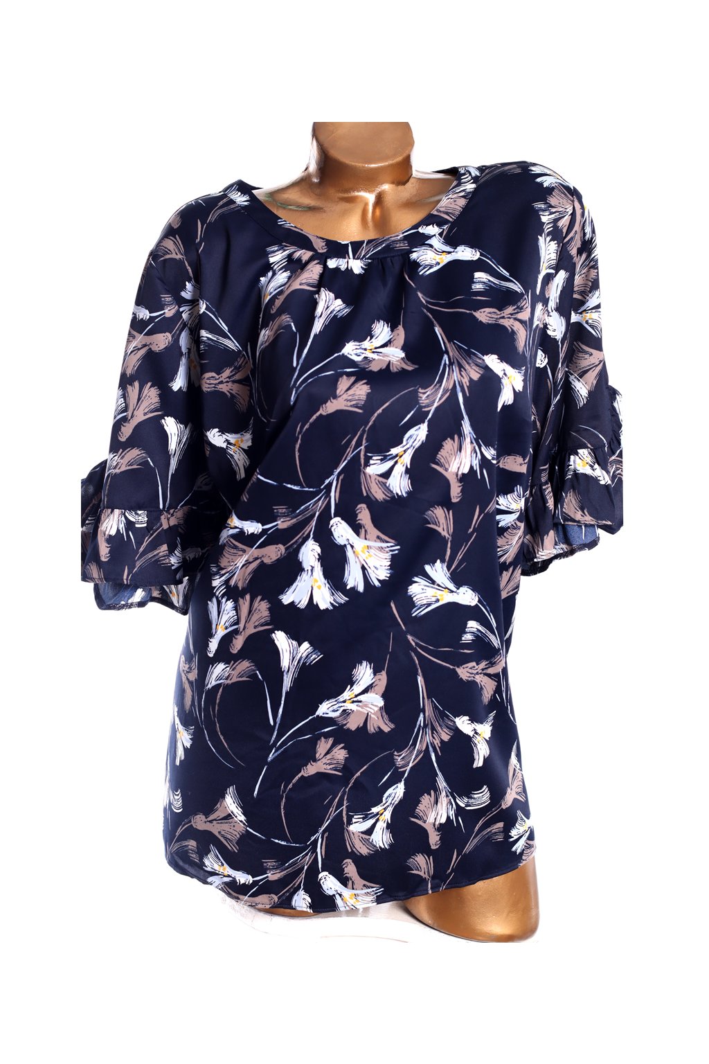 Dámská satenová tmavě modrá halenka s bílo-šedými vzory / TU / XXXL (48) / UK 20 / ANGLIE