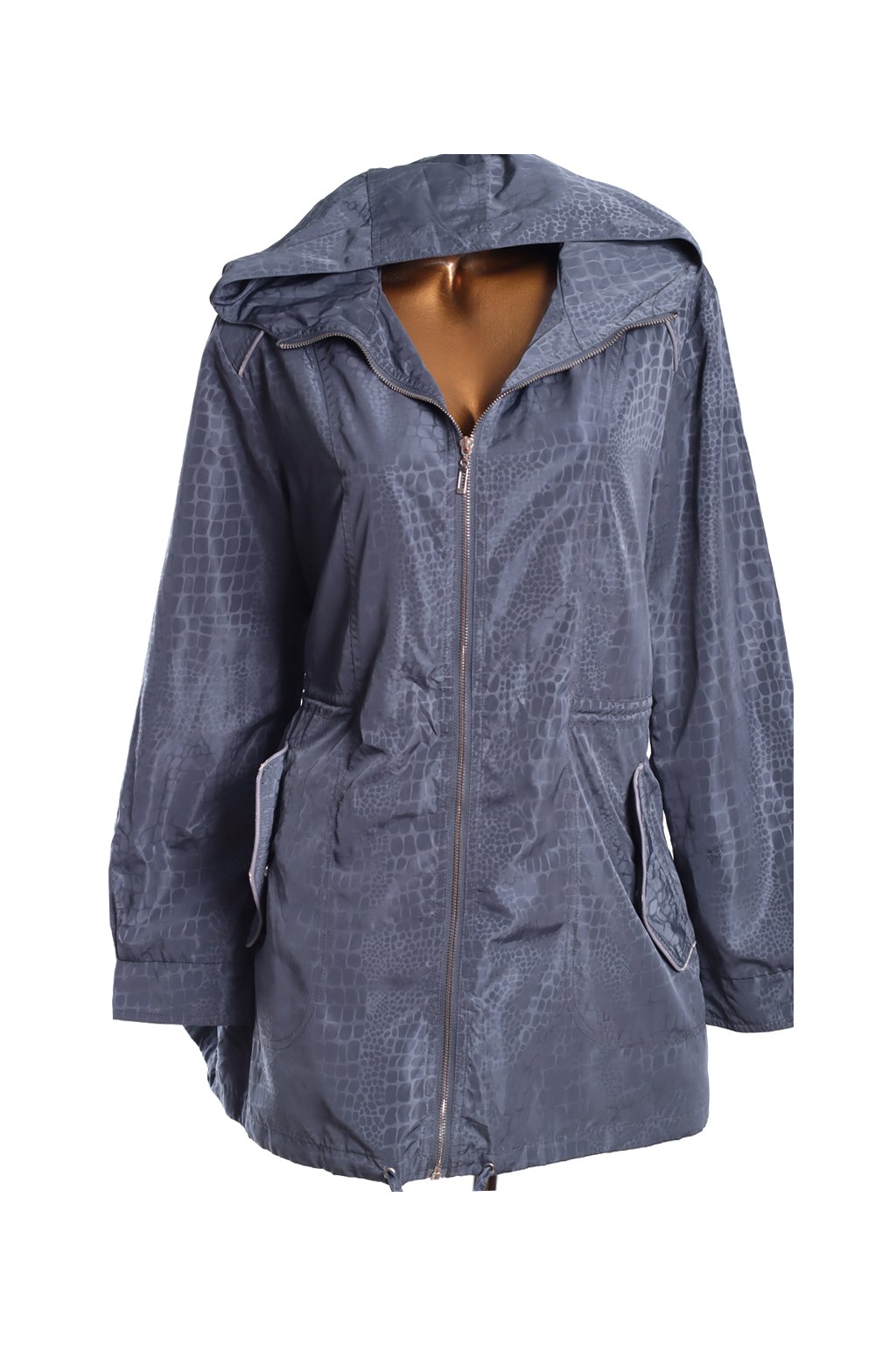 Dámská šedá jarní bunda se vzory a kapucou / FINESSE / XXXL (46) UK 18 / ANGLIE