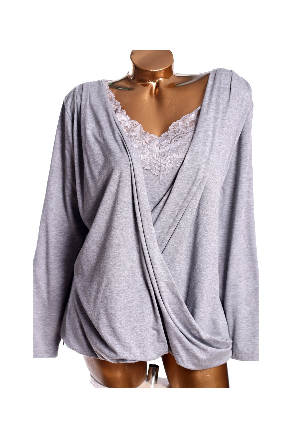 Dámská šedá halenka s krajkou / ANTHOLOGY / XXXXL+ (58) / UK 30 / ANGLIE