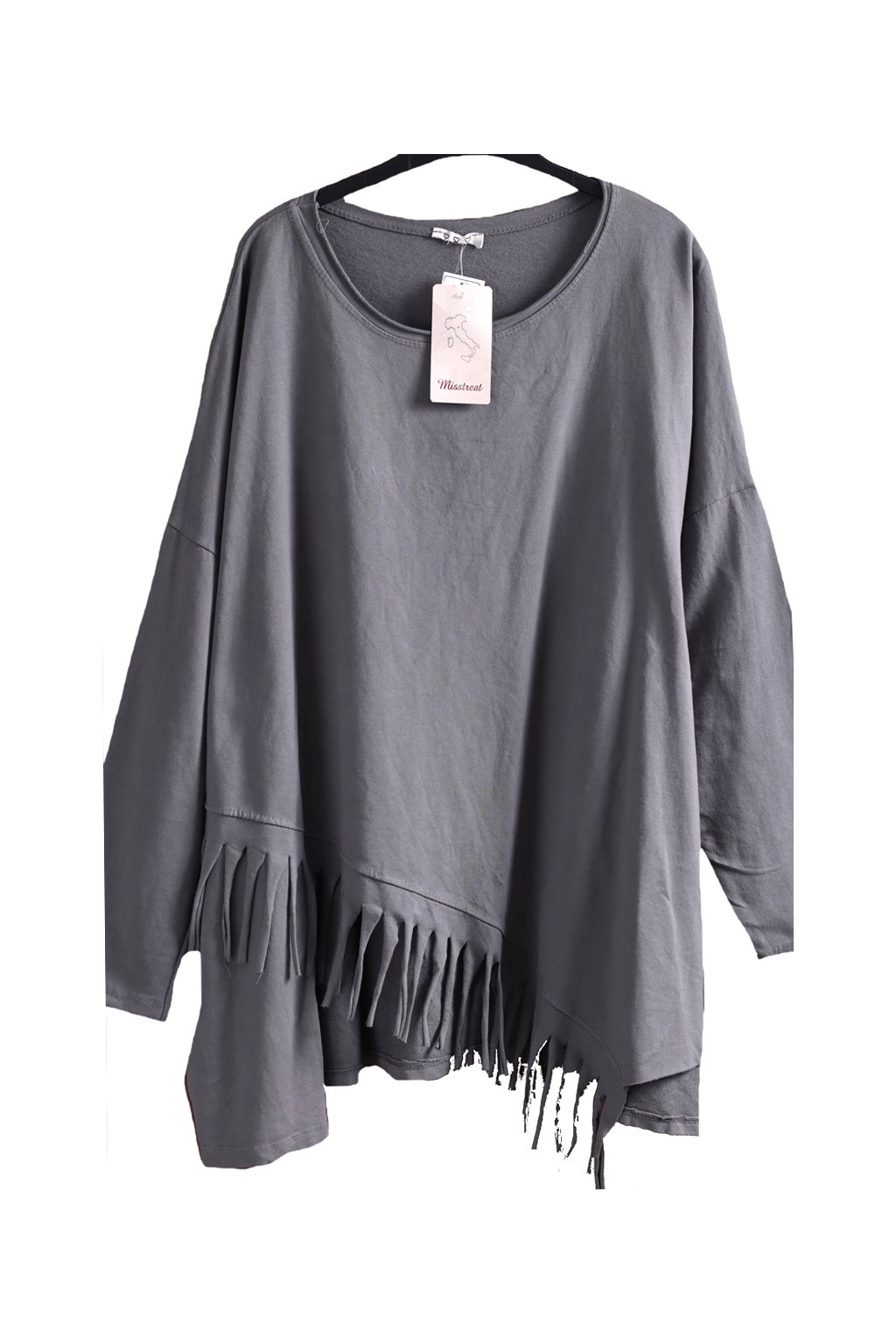 Dámská šedá mikina s třásněmi / MISSTREAT / XXXXL+ (50/52/54 oversize+) / UK 22/24 /ANGLIE