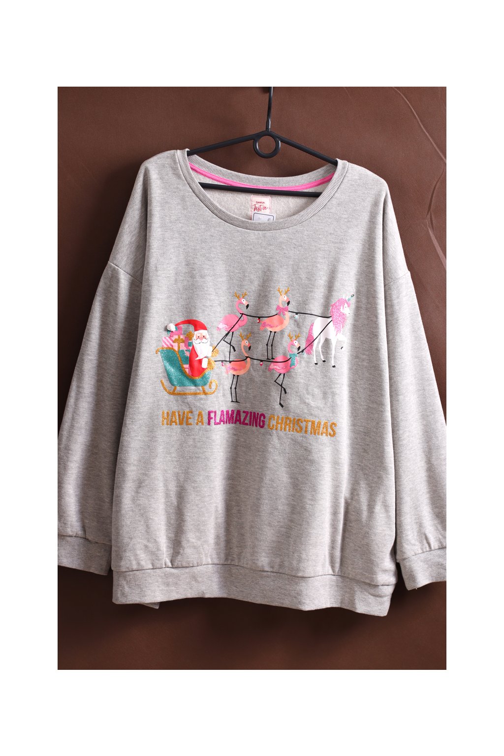 Dámská šedá mikina s vánočním potiskem / George / XXXL (50) / ANGLIE