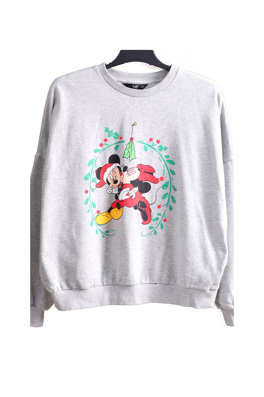 Dámská šedá vánoční mikina s disney potiskem / F&F / XXL (46) / ANGLIE - na štítku UK 18