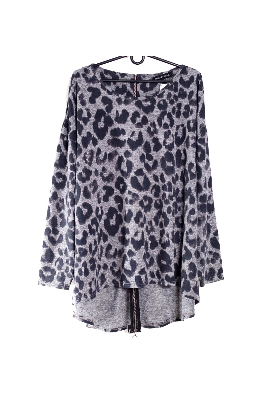 Dámská šedo-černá halenka s leopardím vzorem / Capsule - XXXXL (52) / ANGLIE, v zadním díle zapínání na kovový zip!