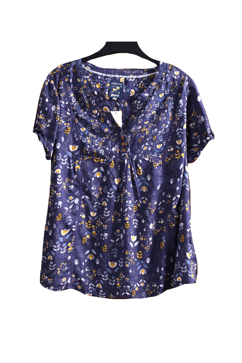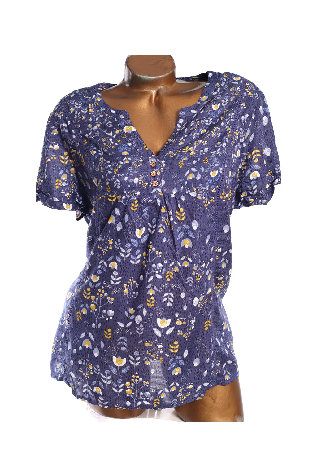 Dámská šedo-modro-žluto-černá vzorovaná halenka s květy / Mantaray / XXL (46) / UK 18 / ANGLIE