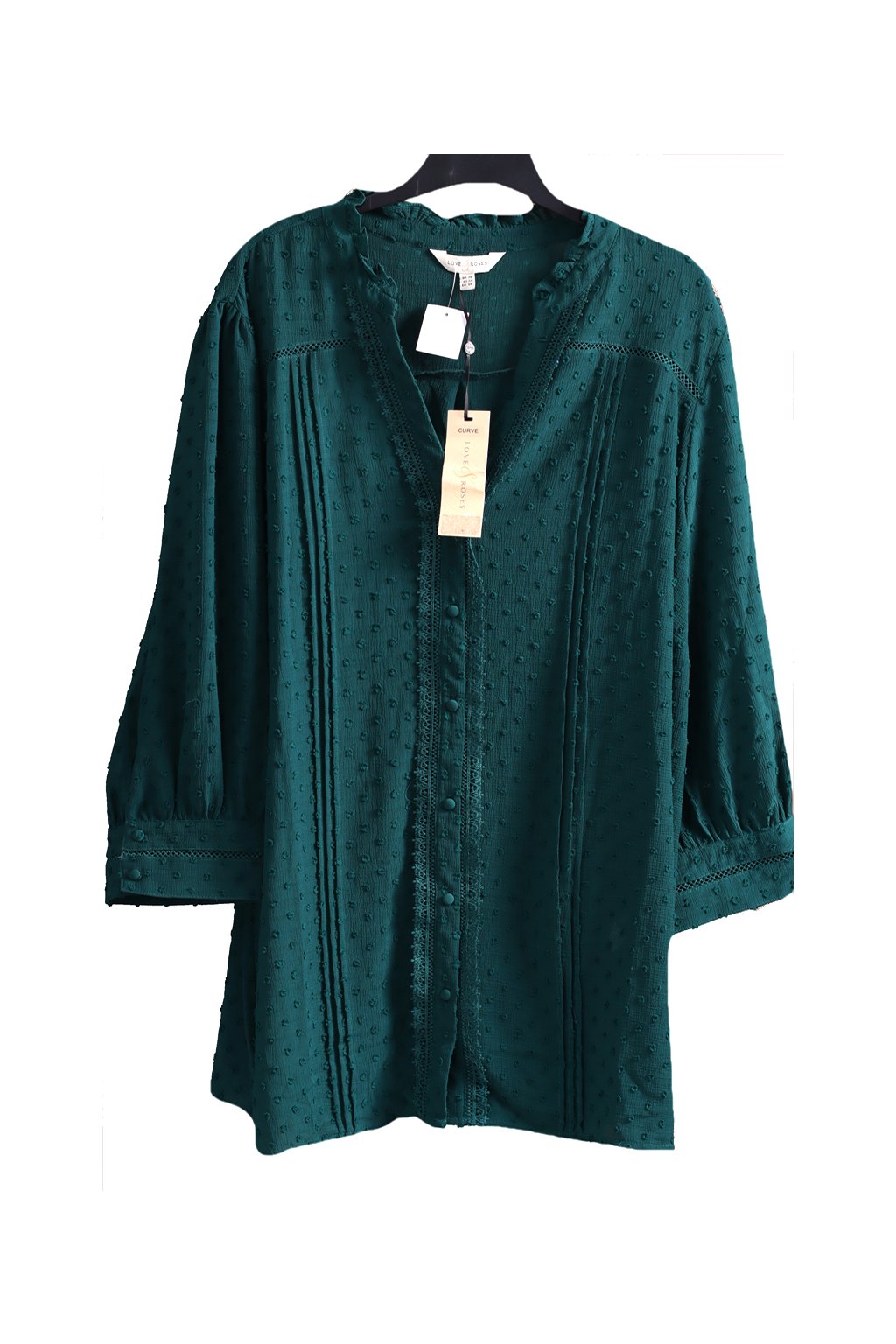 Dámská smaragdová značková, průhledna halenka s puntíky /LOVE ROSES / XXXXL (54) / UK 26 / ANGLIE