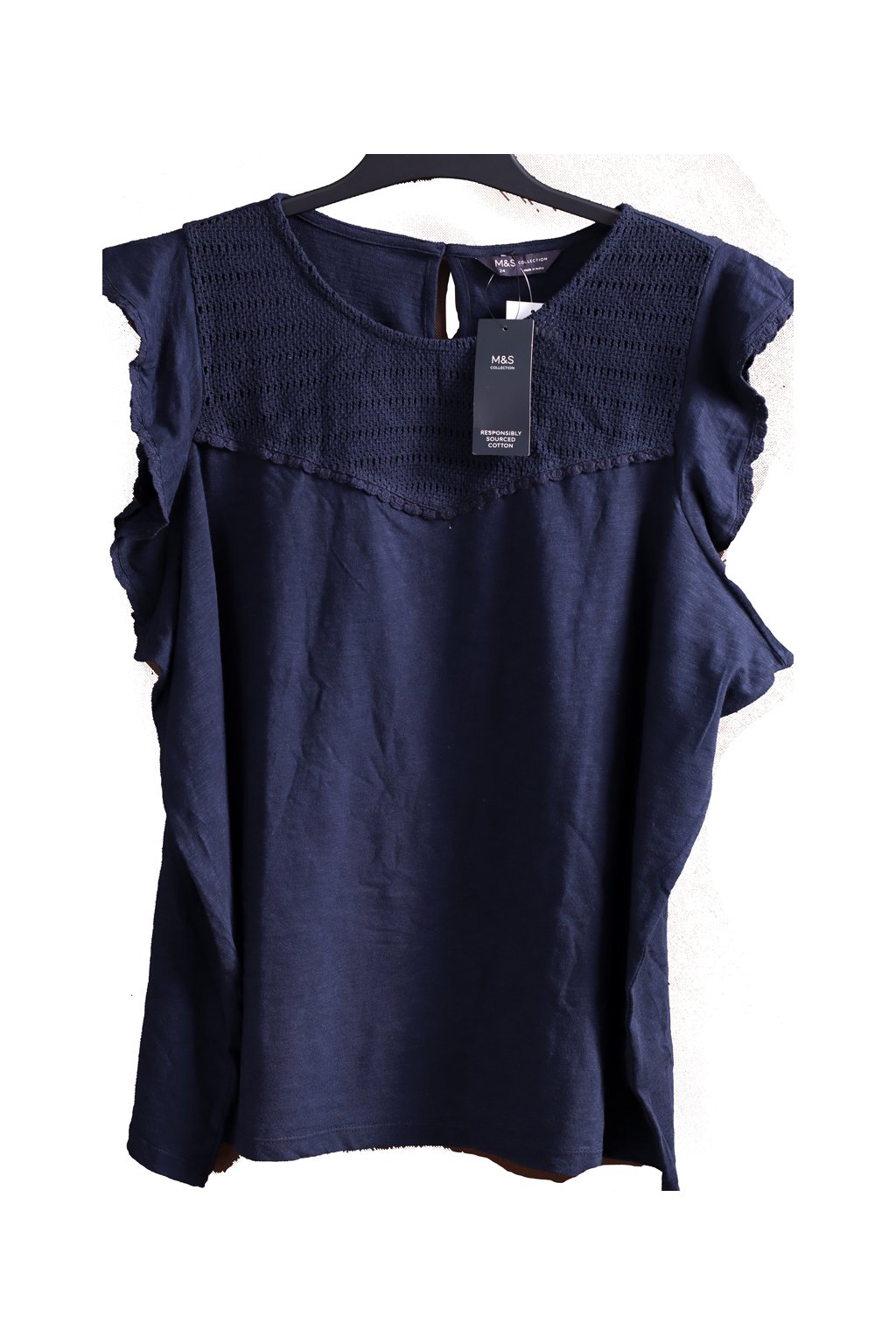 Dámská tmavě modrá halenka s krajkou / Marks & Spencer / XXXXL (52) / UK 24 / ANGLIE