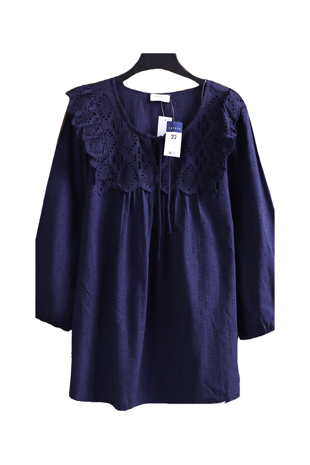 Dámská tmavě modrá halenka s madeirou / PAPAYA / XXXL (50/52/54) / UK 22/24 / ANGLIE