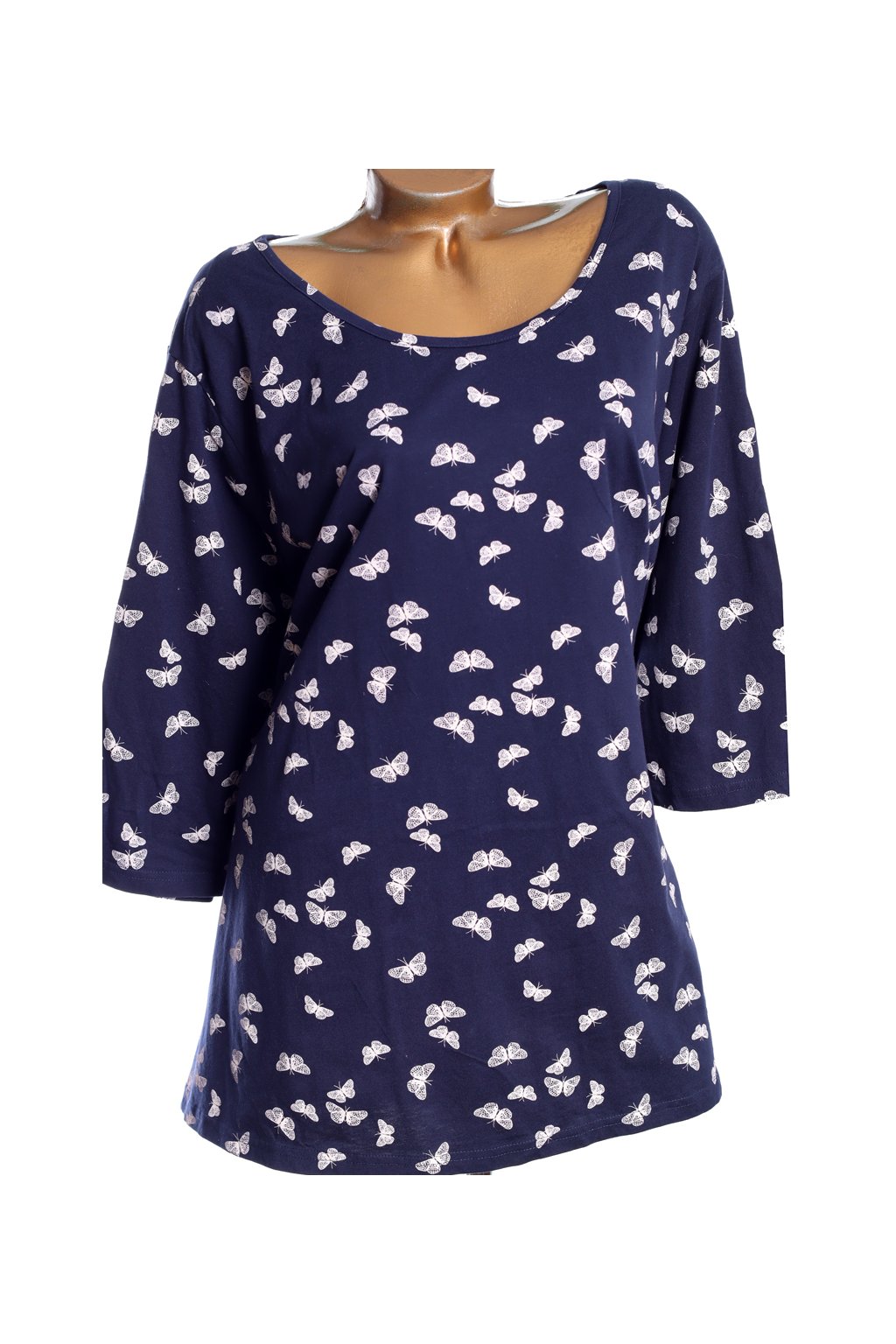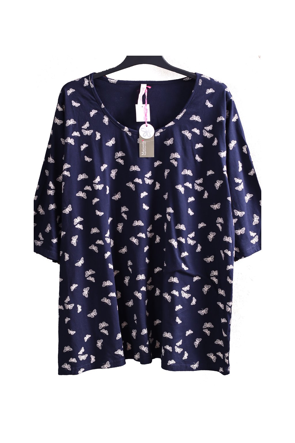 Dámská tmavě modrá halenka s motýly / MARISOTA / XXXXL+ (58) / UK 30 / ANGLIE