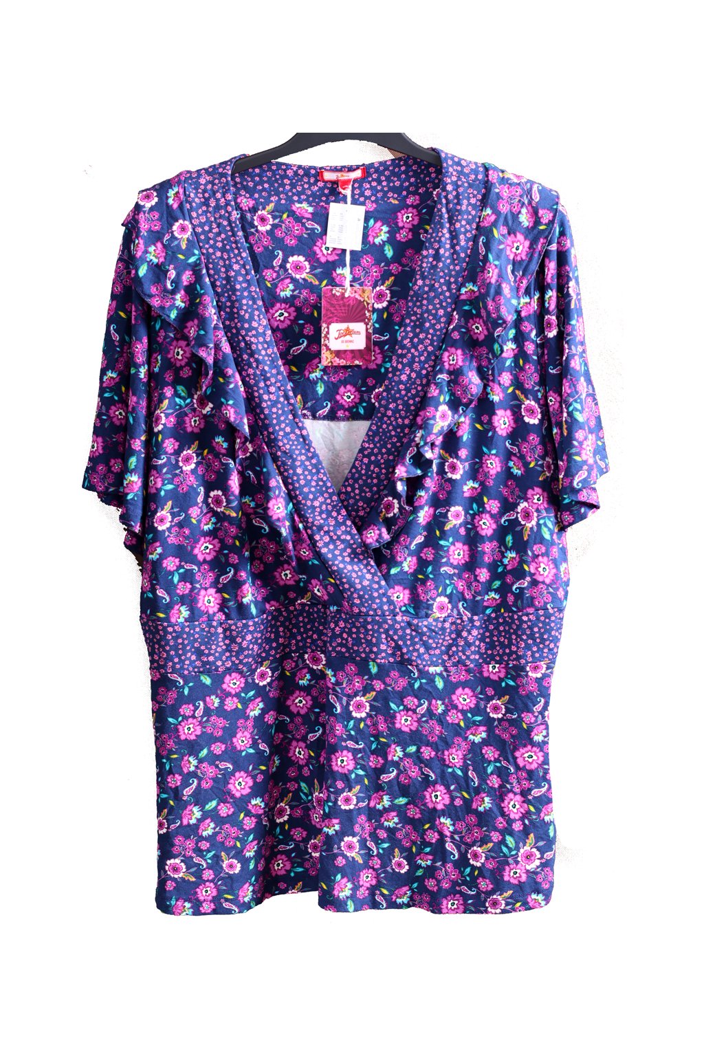 Dámská tmavě modro-růžová kytičkovaná halenka / Jow Browns / XXXXL+ (58) / ANGLIE - na štítku UK 30