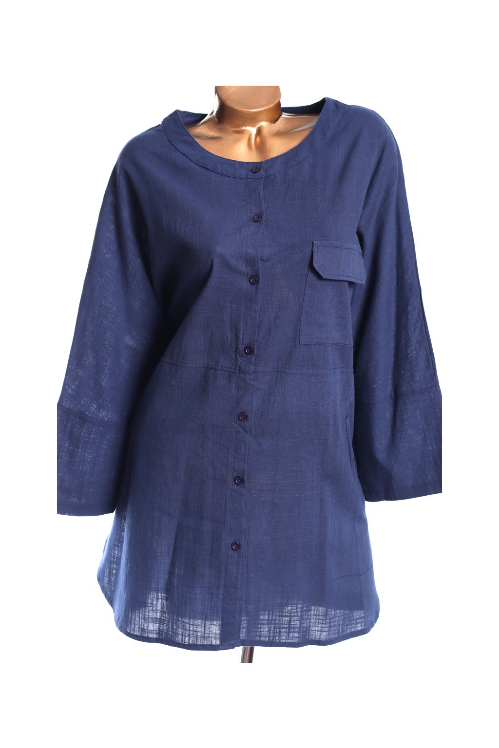 Dámská tmavomodrá lněná halenka / ZANZEA / XXXL (48/50) / UK 20/22 / ANGLIE