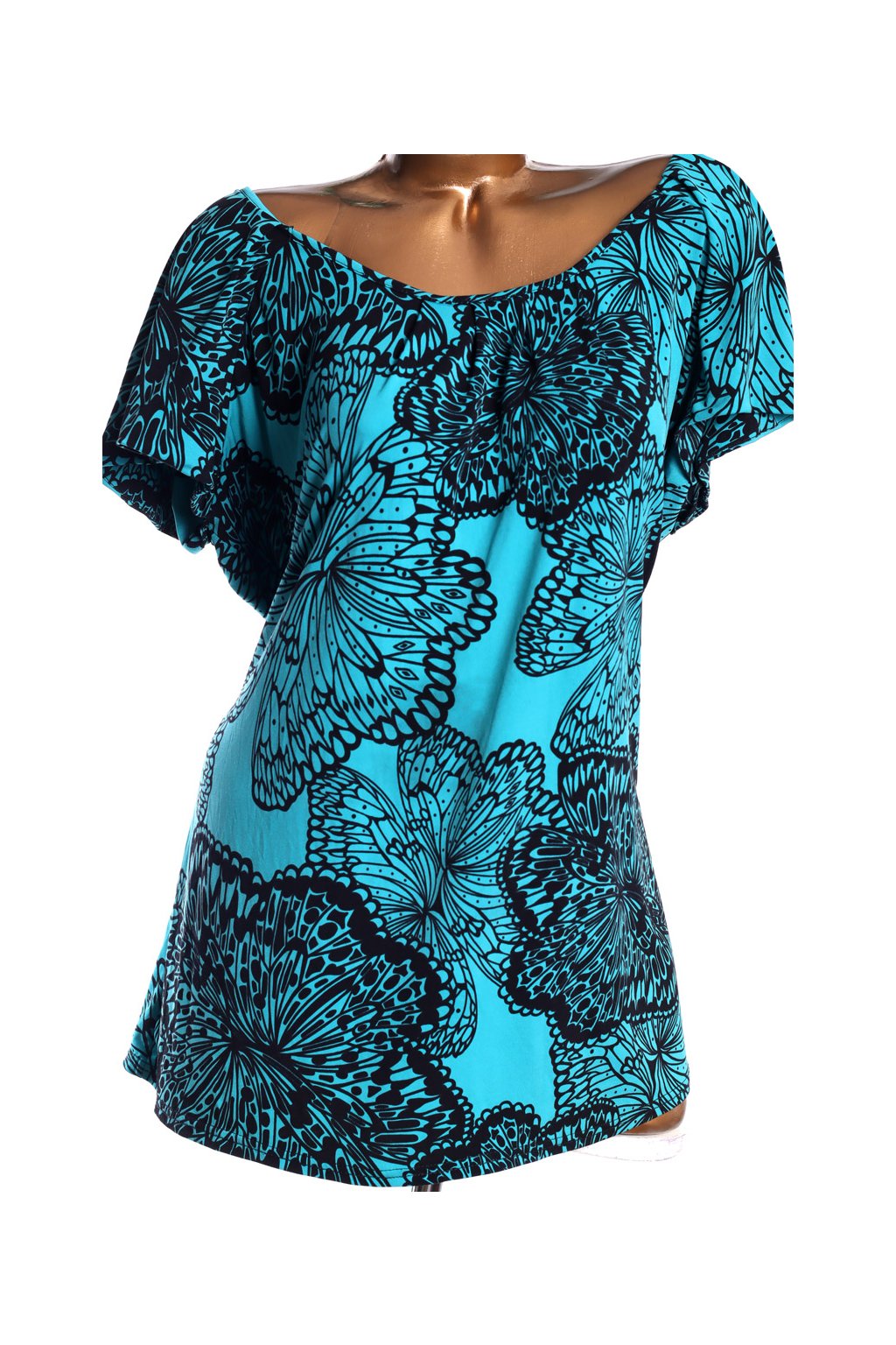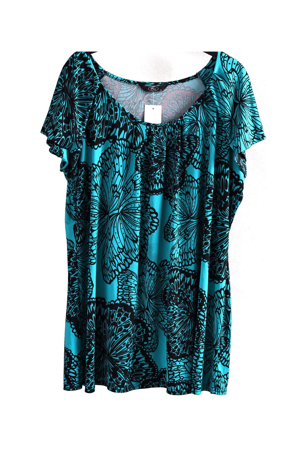 Dámská tyrkysová halenka s černými květy / BM / XXXXL (52) / UK 24 / ANGLIE