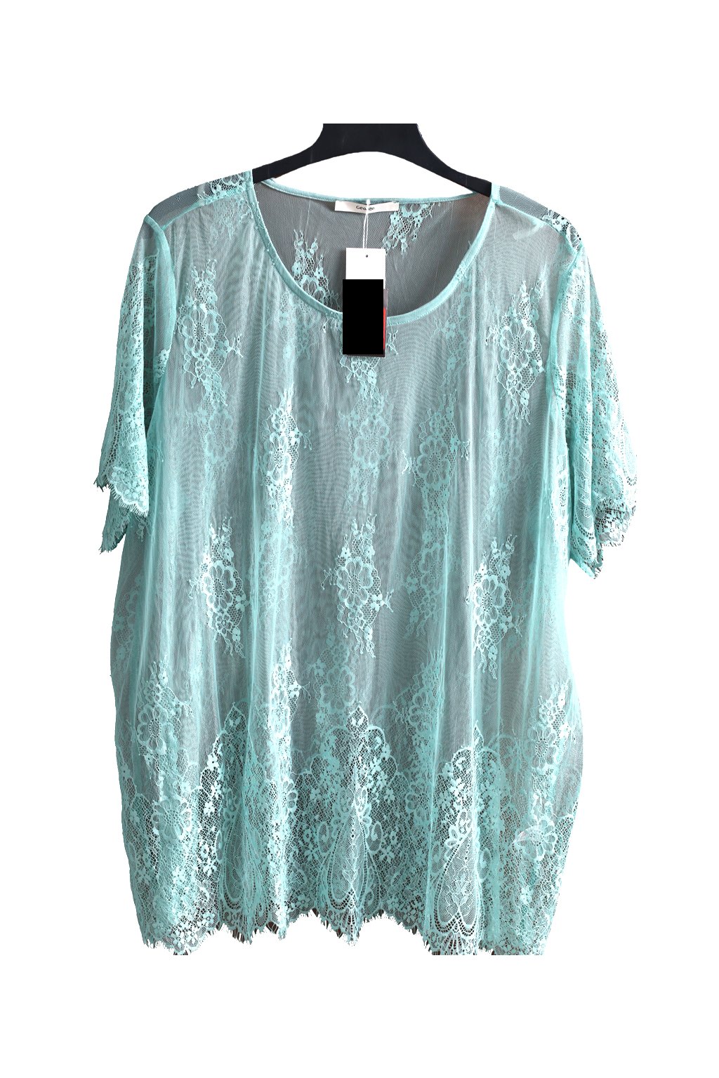 Dámská tyrkysová síťová PRŮHLEDNÁ krajková halenka / GEORGE / XXXL (52) / UK 24 / ANGLIE