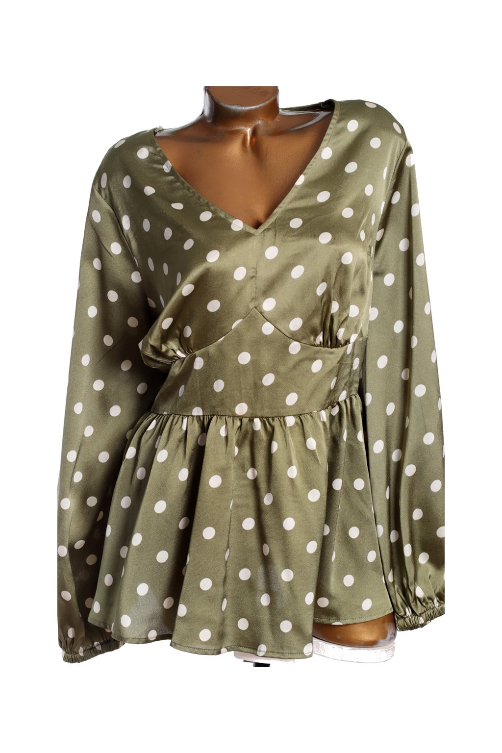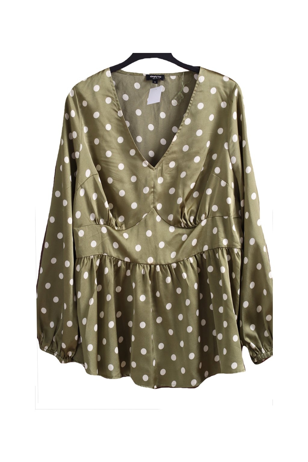 Dámská saténová zelená halenka s bílými punríky / Simply Be - XXXL (50) / UK 22 / ANGLIE