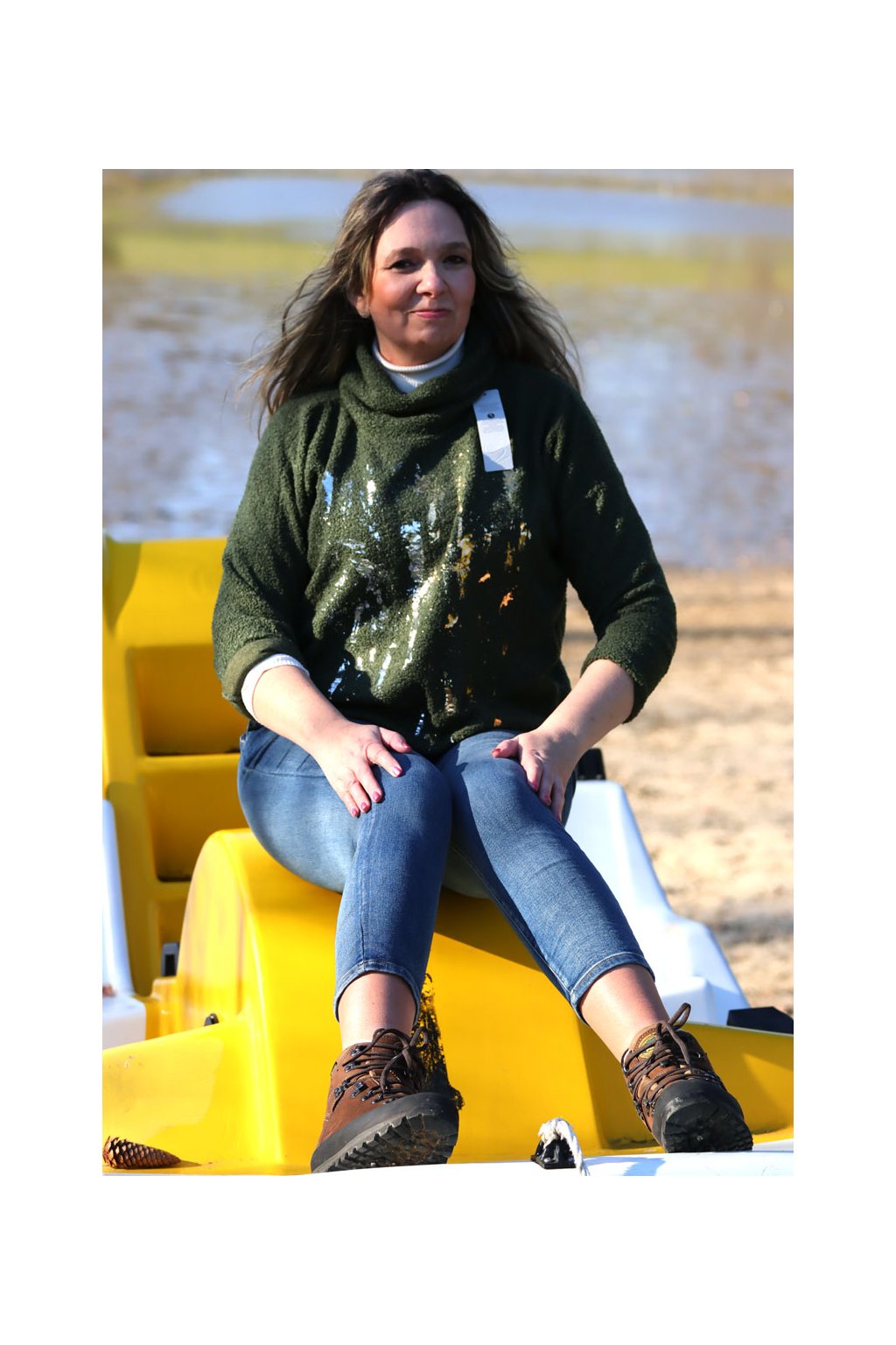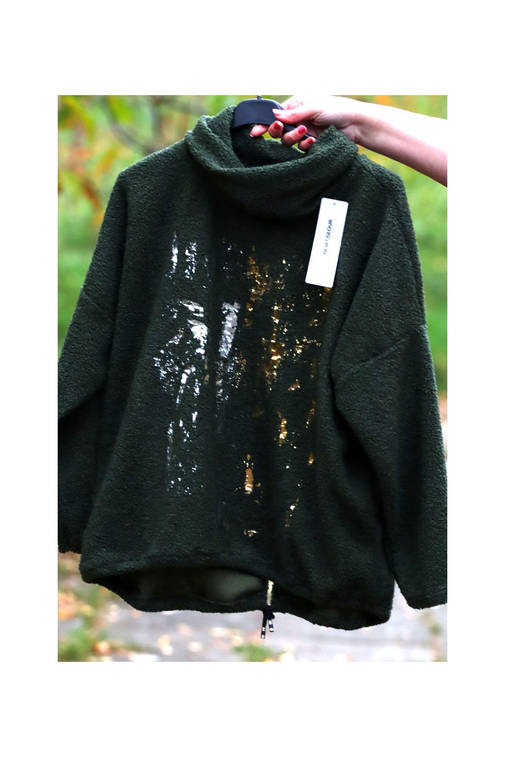 Dámská zelená jemná mikina se zdobením / NEW COLOUR / XXL-XXXL (44/46/48) prsa do 140 cm / MODA ITALY