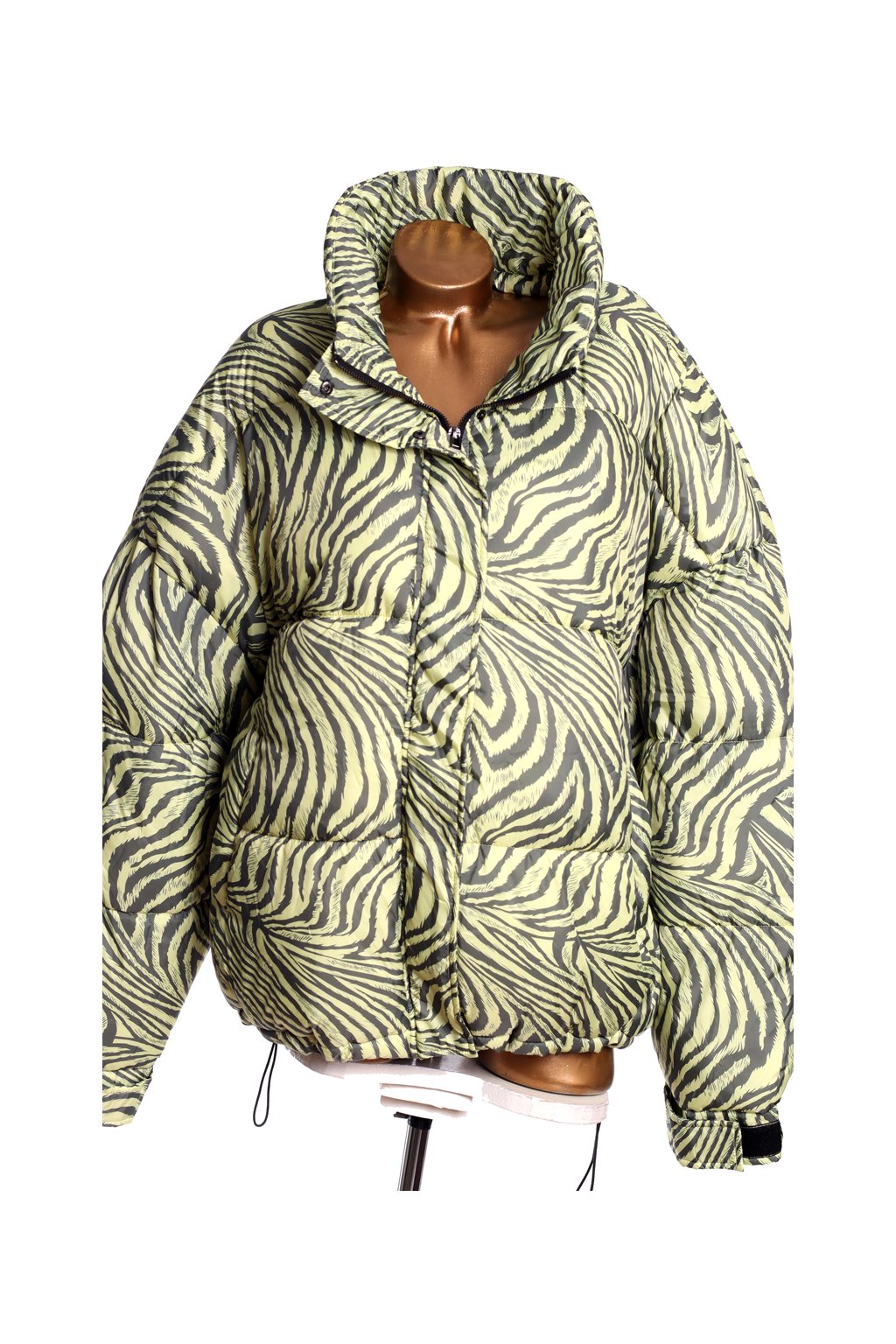 Dámská zelená zimní bunda se zebrovaným vzorem / WEDNESDAYS GIRL/ XXXXL (54) / UK 26 / ANGLIE