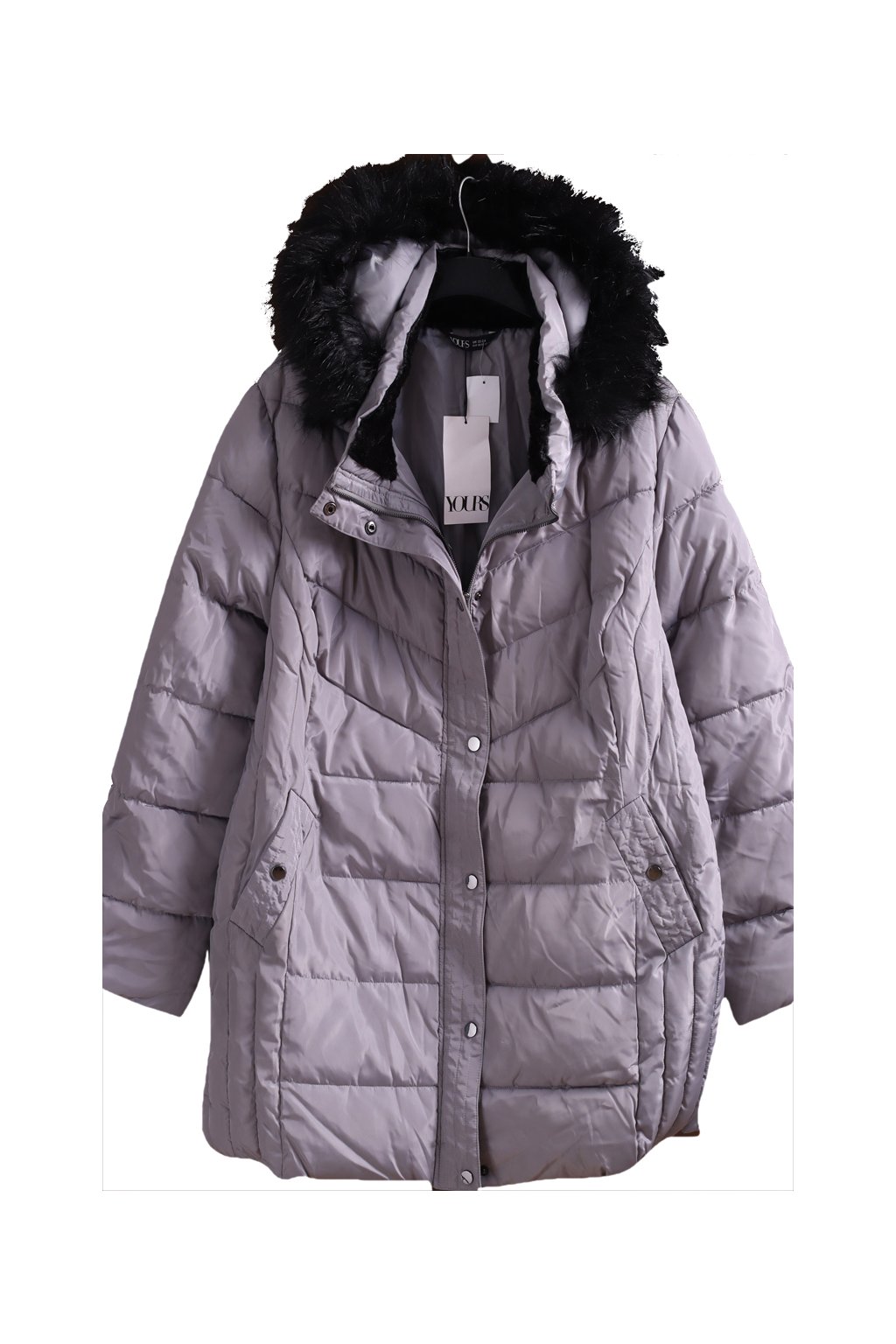 Dámská zimní šedá bunda s kapucí a kožíškem / YOURS / XXXXL (50/52) / UK 22/24 / ANGLIE