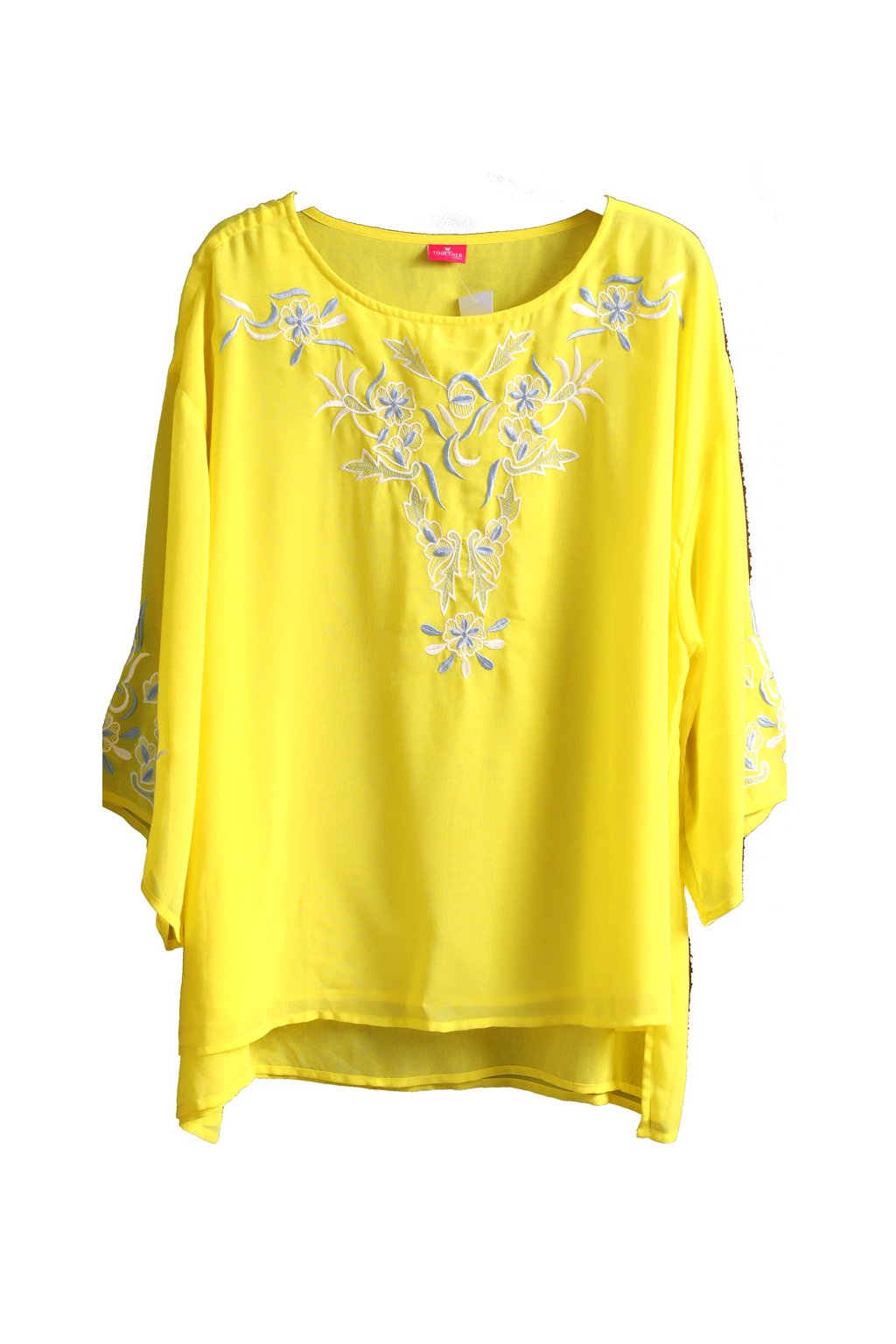 Dámská žlutá halenka s vyšitým vzorem/ TOGETHER / XXL (46) / UK 18 / ANGLIE