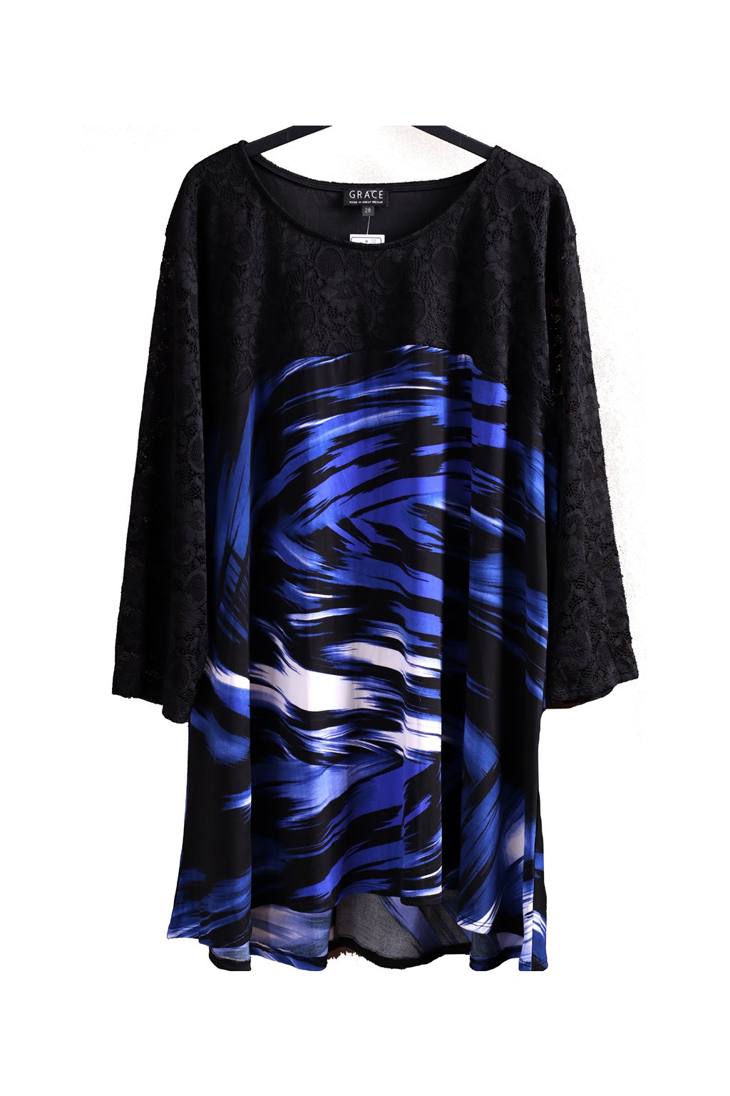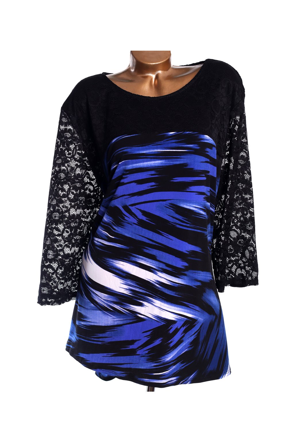 Dámská značková černo-modrá vzorovaná tunika s krajkou / GRACE / XXXXL (56) / UK 28 / ANGLIE