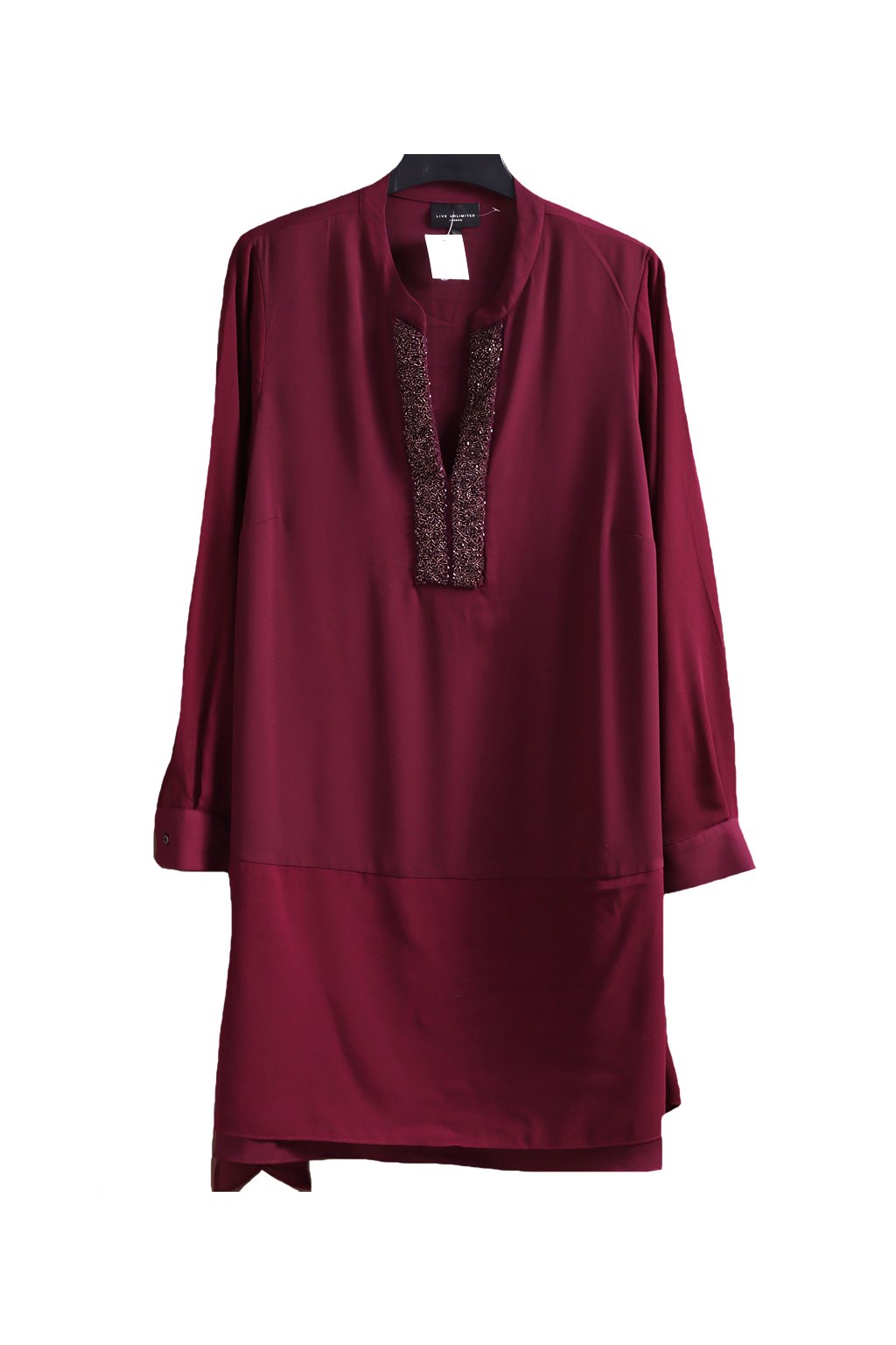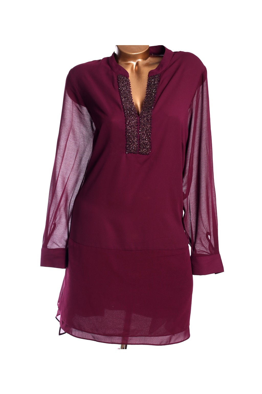 Dámská značková dlouhá vínová halenka/šatys kamínky / LIVE UNLIMITED / - XXXL (48/50) / UK 20 ANGLIE