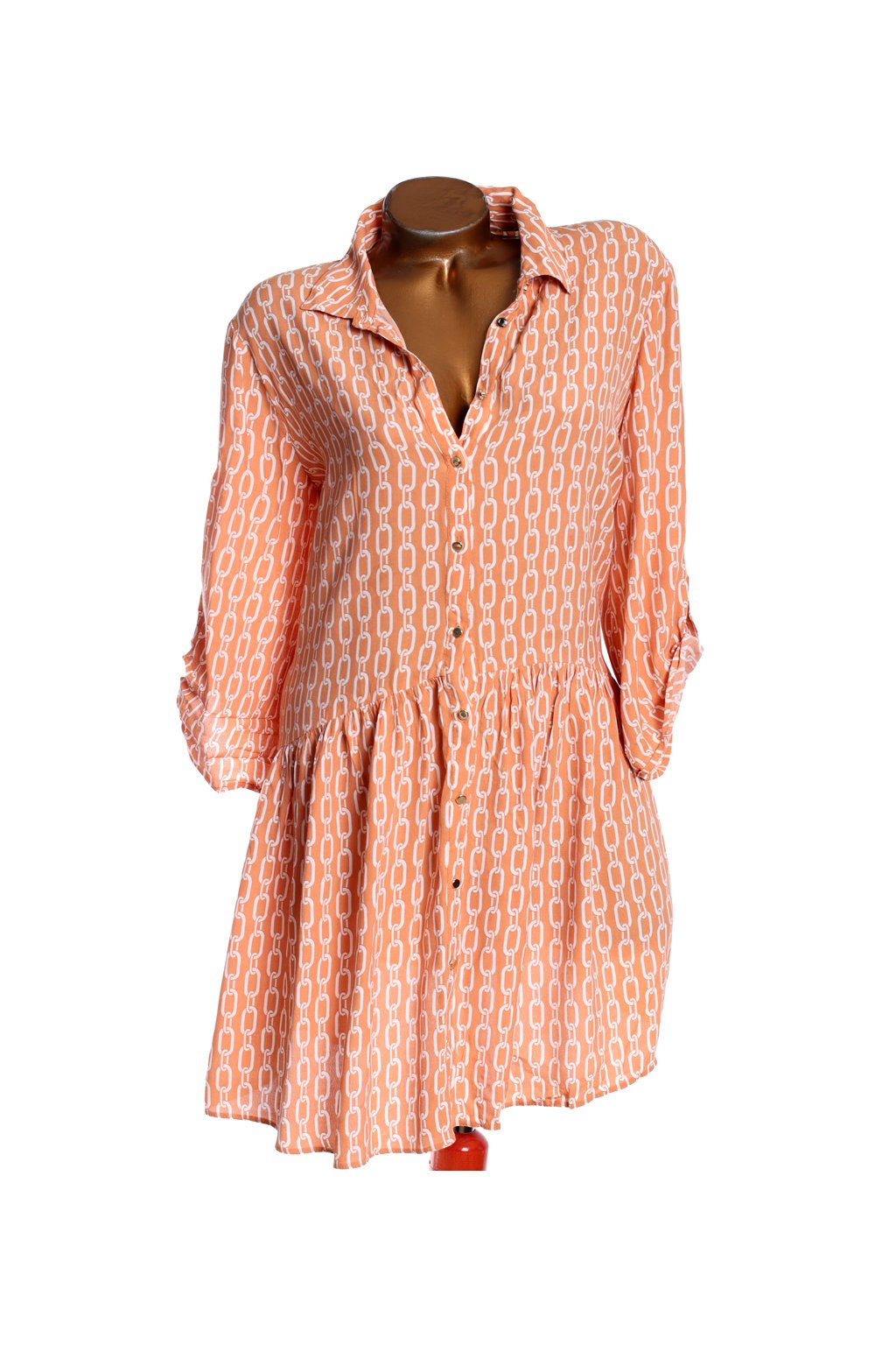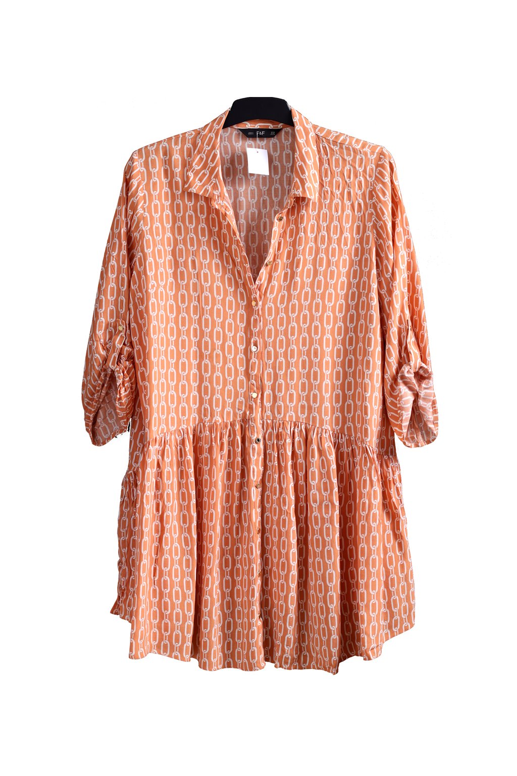 Dámské béžovo/hnědo bílé šaty s ornamenty spojeného řetízku / F§F / XXXL (48) / UK 20 / ANGLIE
