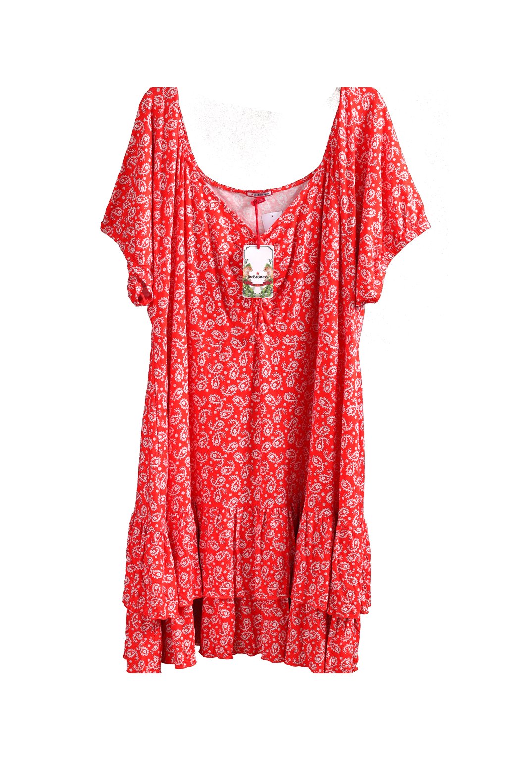 Dámské červené šaty s bílými vzory / JOE BROWNS / XXXL (60) / UK 32 / ANGLIE