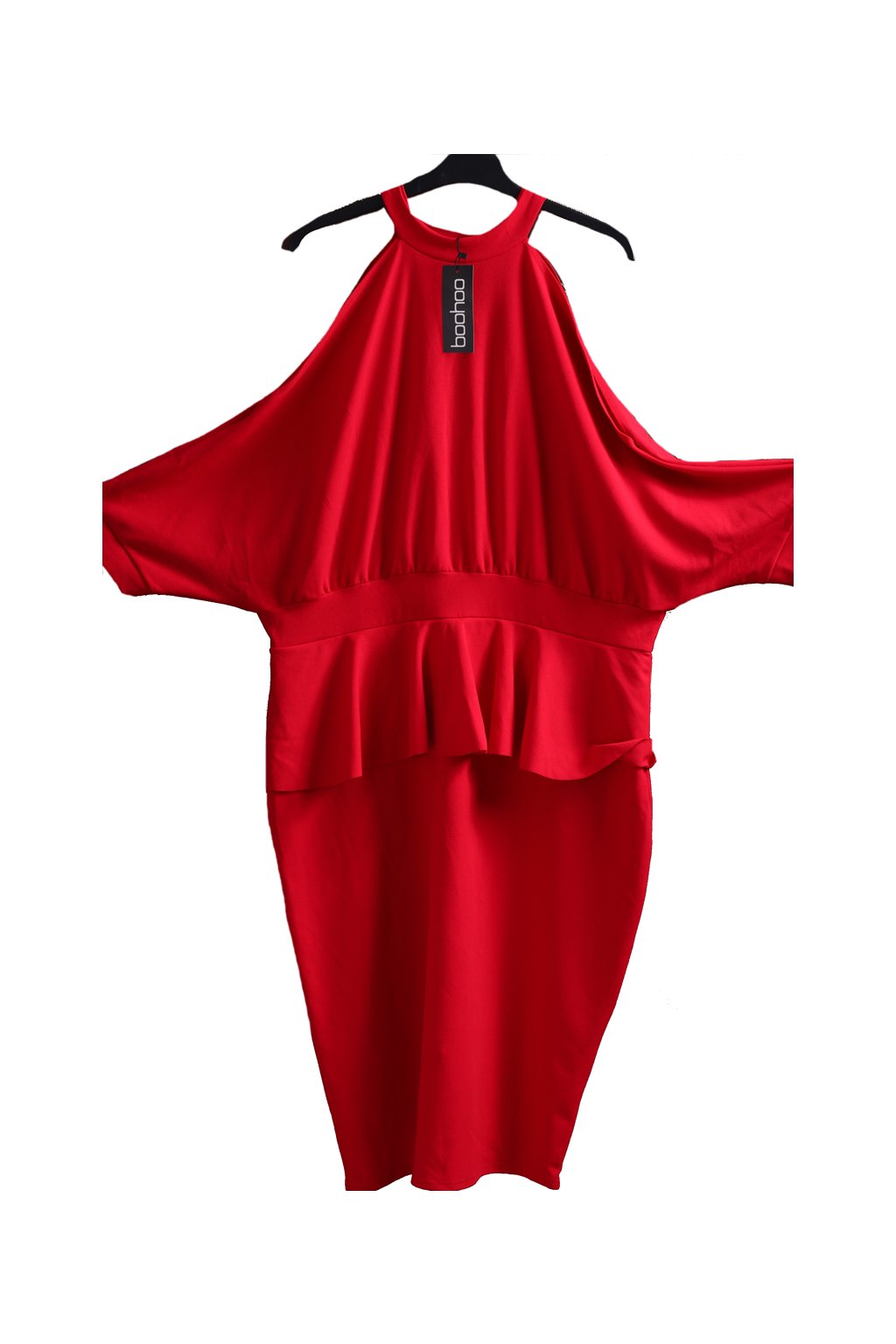 Dámské červené šaty s volány / BOOHOO / XXXL (50) / UK 22 / ANGLIE