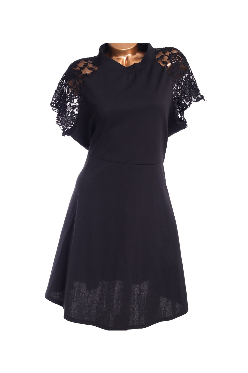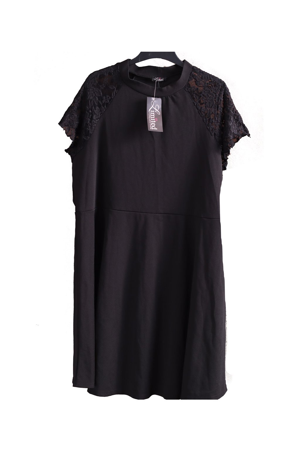 Dámské elastické černé šaty s krajkovými rukávy / LIMITED / XXXL (52) / UK 24 / ANGLIE