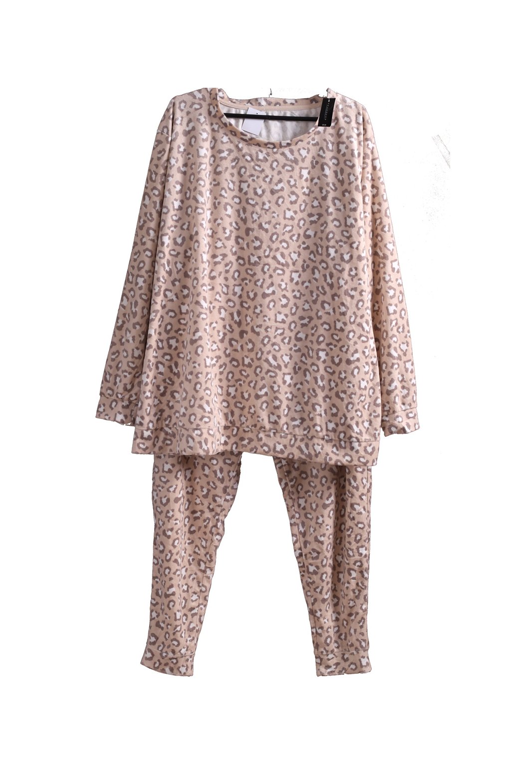 Dámské hnědo-bílo-béžové leopardí teplé pyžamo / PEACOCKS / XXXL (50/52) / UK 22/24 / ANGLIE