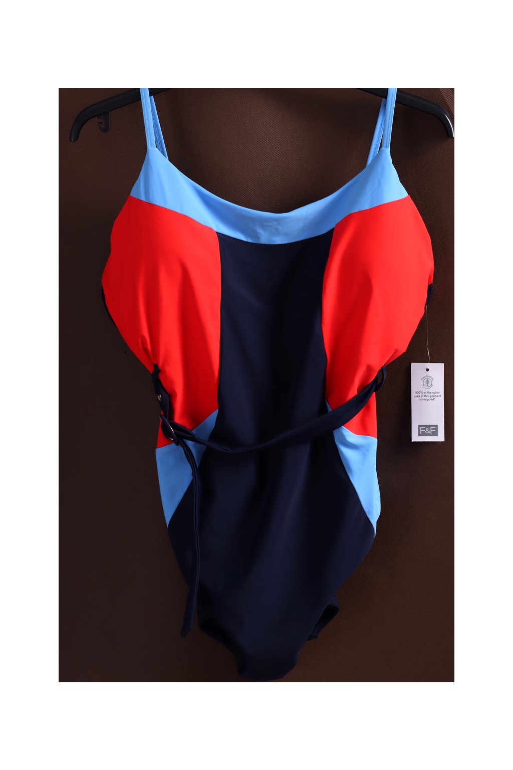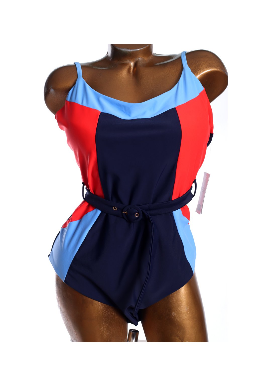 Dámské jednodílné plavky s modrými a červenými pruhy / FF / XXXL (50) / UK 22 / ANGLIE