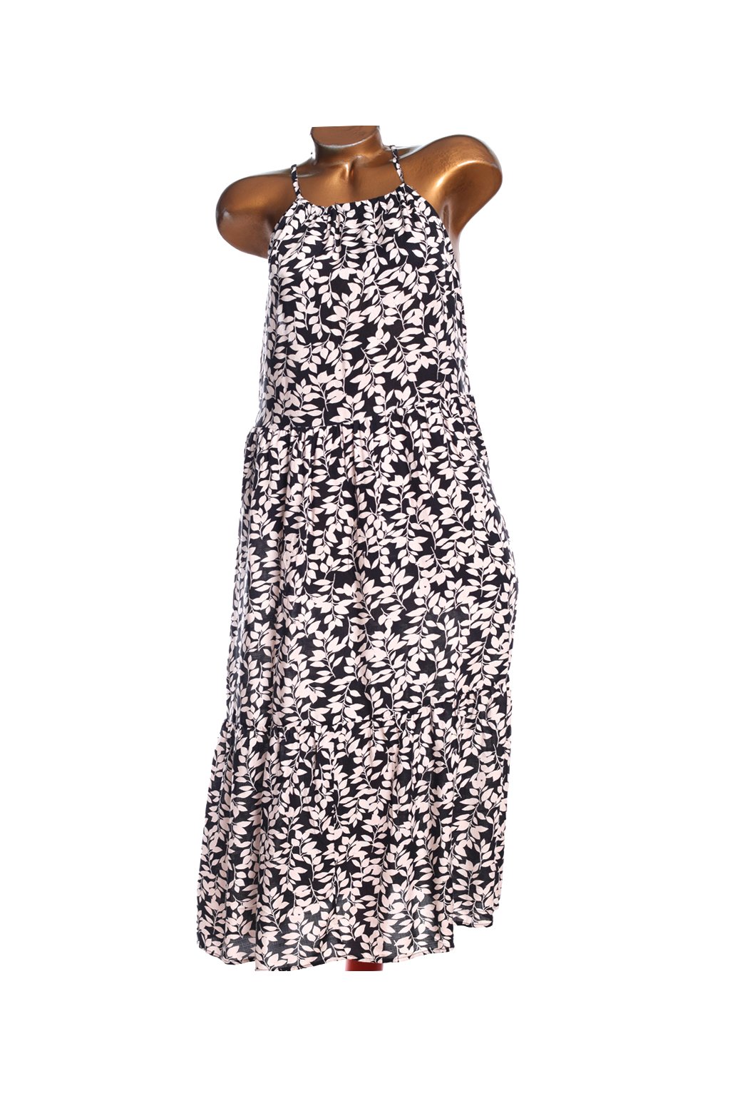 Dámské příjemné, černé, viscosové šaty s bílými listy / GEORGE / XXXL (48/50) / ANGLIE (22)