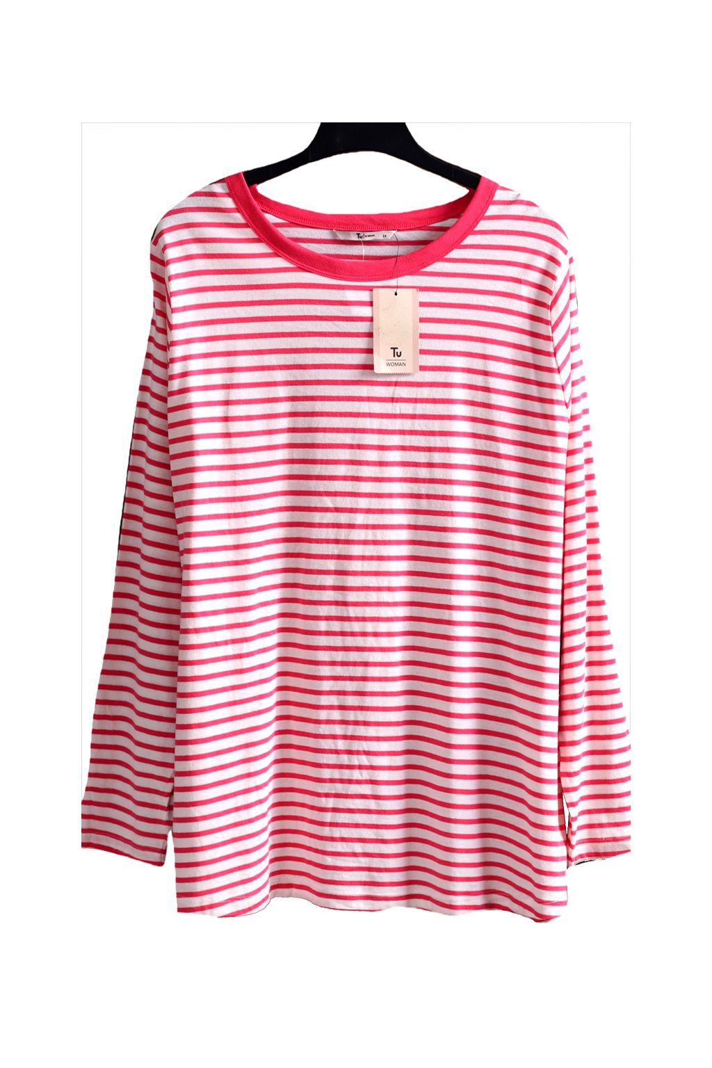 Dámské tmavo růžovo-bílé pruhované triko / Tu / XXXL (52) / UK (24) ANGLIE