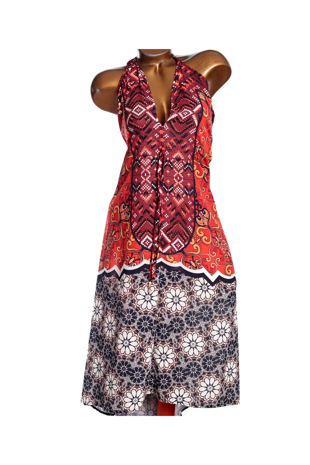 Dámské barevné letní šaty s vázáním za krk / JOANA HOPE / XXXL (48/50) / UK 22 / ANGLIE
