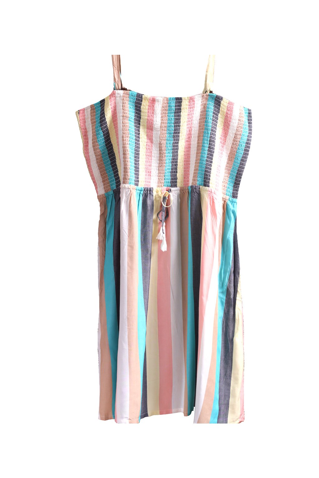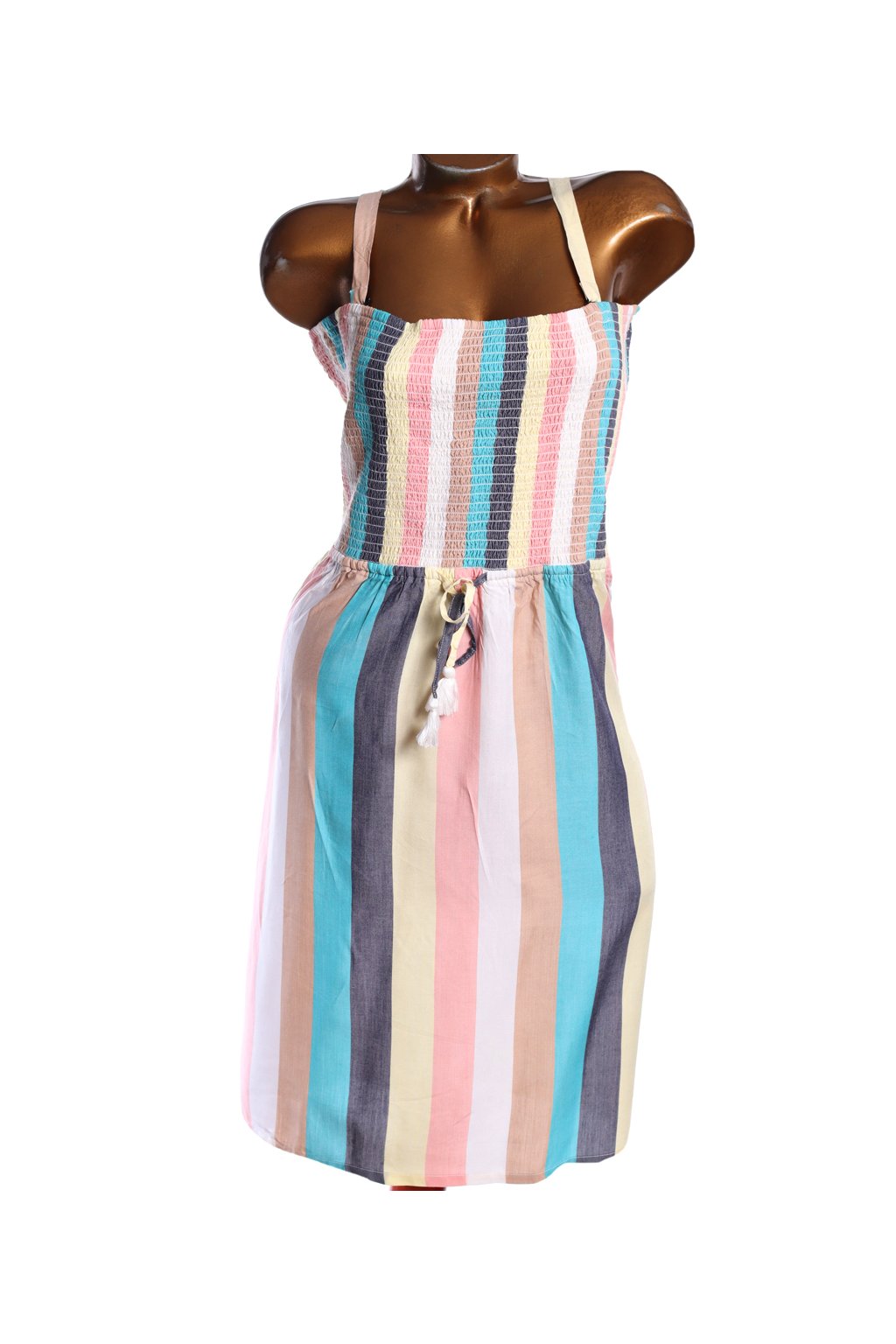 Dámské barevné pruhované šaty s žabkováním / DAMART / XXXL (54) / UK 26 / ANGLIE