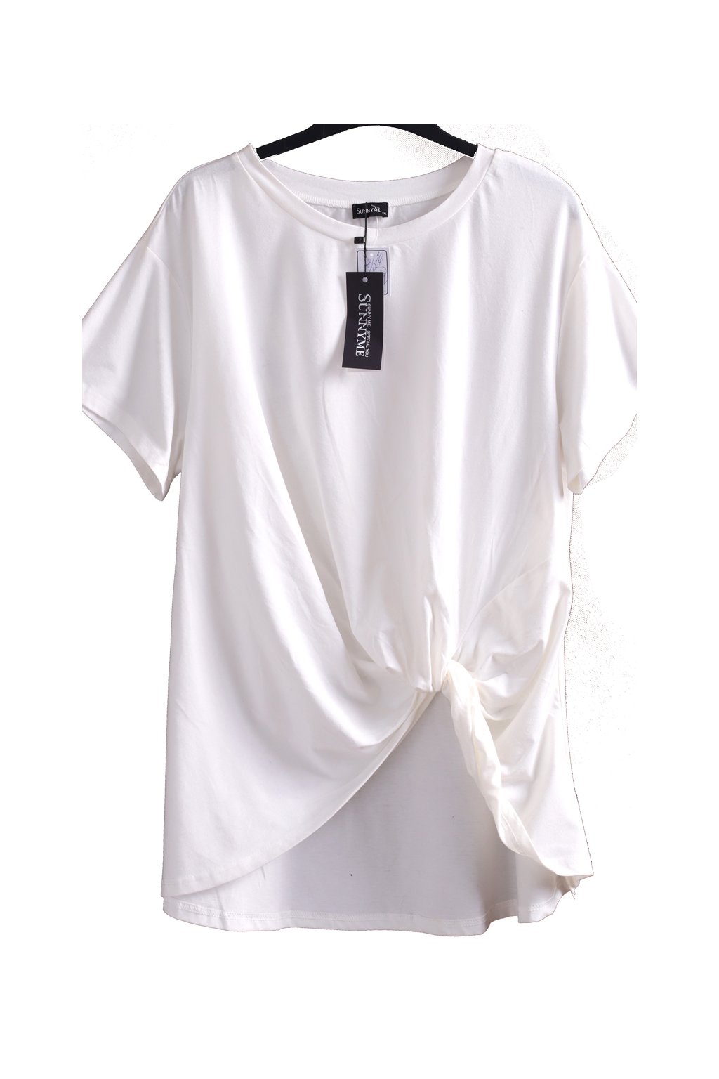 Dámské bavlněné bílé triko se zavazováním / SUNNYME / XXXL (48/50)/ UK 22 / ANGLIE