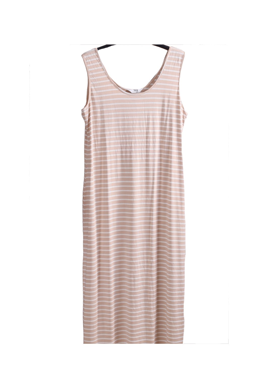 Dámské béžové šaty s bílými pruhy - elastické / DOROTHY PERKINS / XXL (46) / UK (18) / ANGLIE